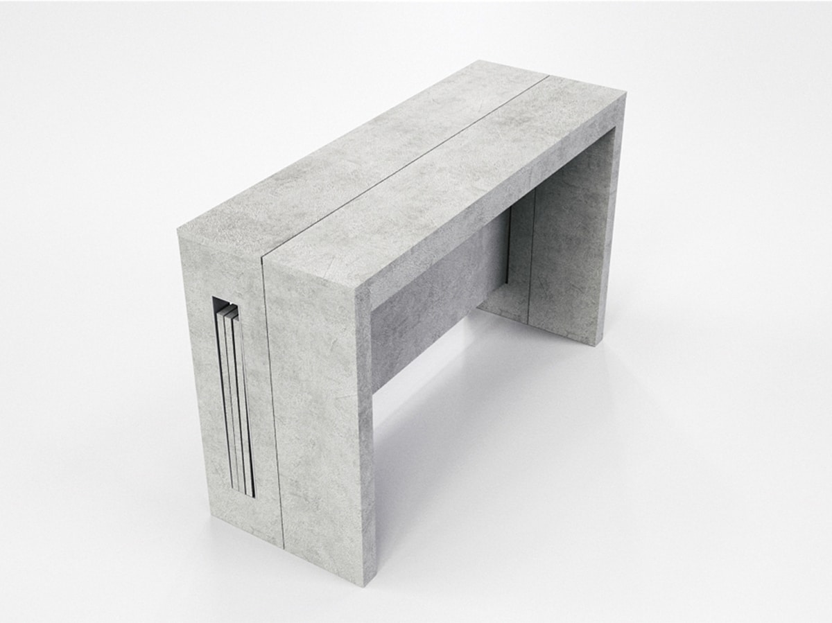 Demander prix Produits similairesLa console rectangulaire extensible, entièrement réalisée en bois lamellé, est disponible dans des finitions telles que Marbre Blanc, Corten et Ciment. Intégrées à la structure se trouvent 3 extensions mesurant chacune 47 cm.