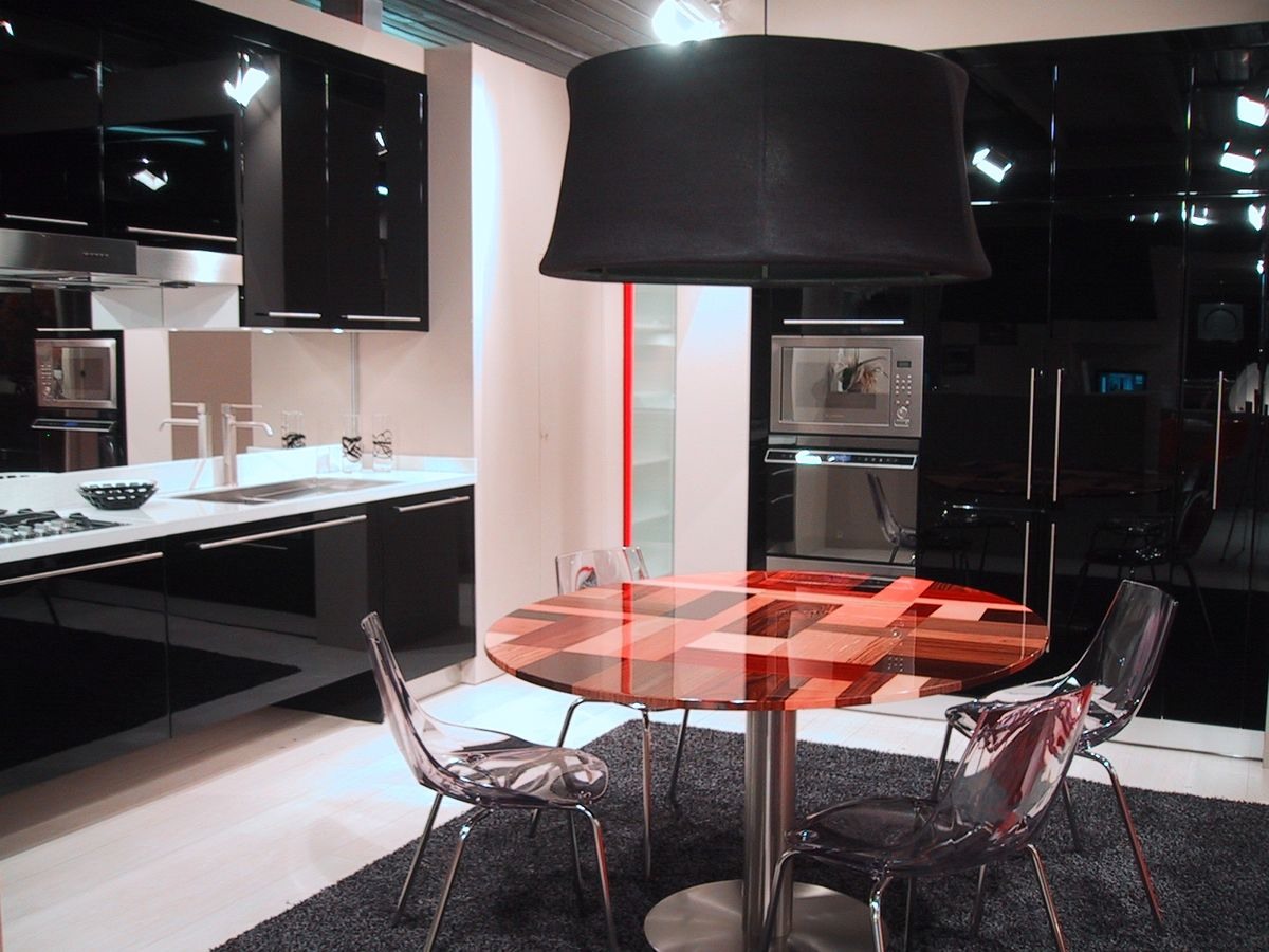 Cuisine raffinée, faite avec des meubles suspendus avec des bases profondes supérieurs à la norme, l'élégance déterminée, disponible dans tout noir, mais réalisable en une touche.