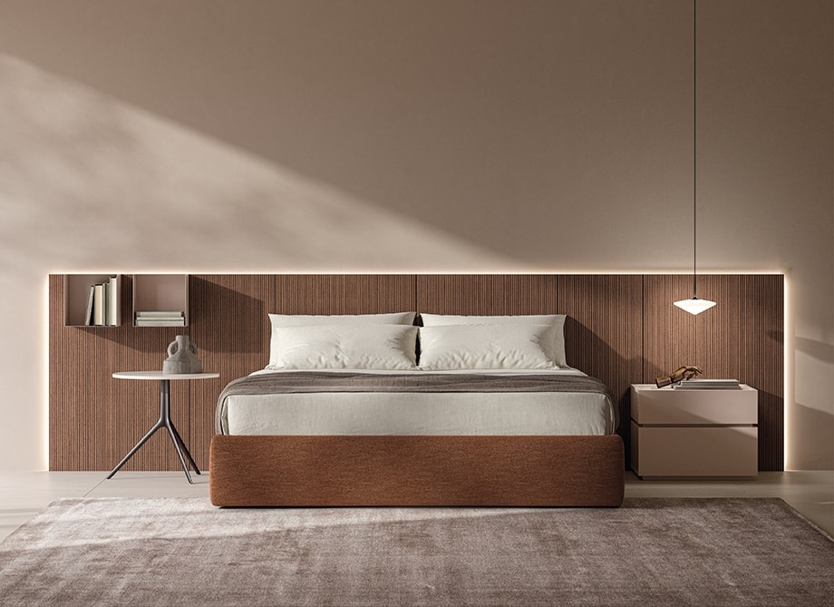 Le nouveau système modulaire Boiserie ponctue les différents murs intérieurs de la maison à travers une esthétique linéaire. Riche en éléments optionnels, il peut être interprété selon différents besoins de conception.