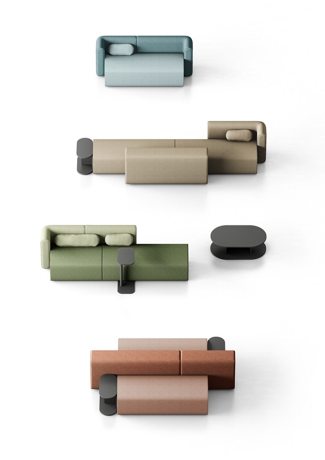 Demander prix Produits similairesLe canapé et l'ottoman modulaires Noà, conçus par le studio de Plus Design de Nicola Cacco, allient ductilité, goût et élégance pour des open-space dotés d'une personnalité unique. Ses formes et ses dimensions généreuses rappellent l'arche - le nom vient de l'hébreu et évoque Noé - presque comme pour donner un sentiment de paix et de sécurité; cela signifie de multiples solutions d'ameublement pour les environnements open-space avec un grand espace de transit et de vie pour les utilisateurs, les visiteurs, les invités, les clients à l'entrée, le lobby, le hall et la salle d'attente des bureaux, des gares et des centre commercial. Le canapé modulaire plus pouf Noà se compose de 3 sièges et de 6 dossiers attachables + accoudoirs/dossiers "étroits" ou "larges" (en option) qui, grâce à un système modulaire, ils façonnent l'espace avec des géométries et des volumes au caractère unique. Noà peut être décrit comme un pouf, un canapé de salon, une banquette ou un siège-pouf avec dossier, en version 1 ou 2 places, qui peuvent tous être reliés entre eux et sont disponibles avec l'électrification SCHUKO / USB type "C". Chaque module se compose d'un cadre en bois, rembourré et revêtu de tissu ignifuge recyclé et recyclable, d'éco-cuir, cuir, de laine, tous choisis parmi plus de 300 nuances de couleurs. Le canapé-pouf modulaire Noà est complété par une table basse à placer devant le siège, un meuble de rangement qui peut être positionné à droite ou à gauche et une table basse indépendante. La collection de canapés et poufs modulaires Noà est entièrement démontable, ce qui facilite la réutilisation et le recyclage des matériaux qui la composent.