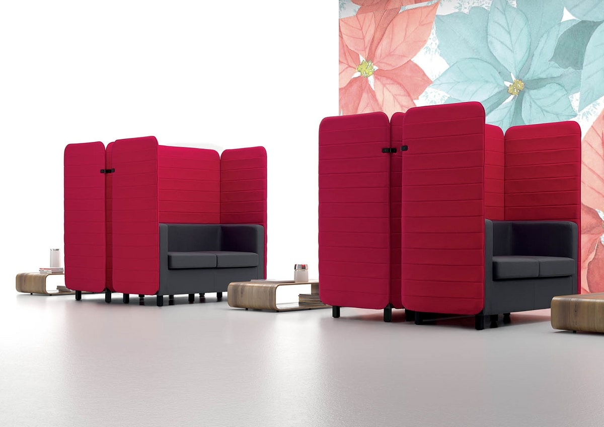 Canapé de salle d'attente. Avec dossier haut pour favoriser l'intimité.
