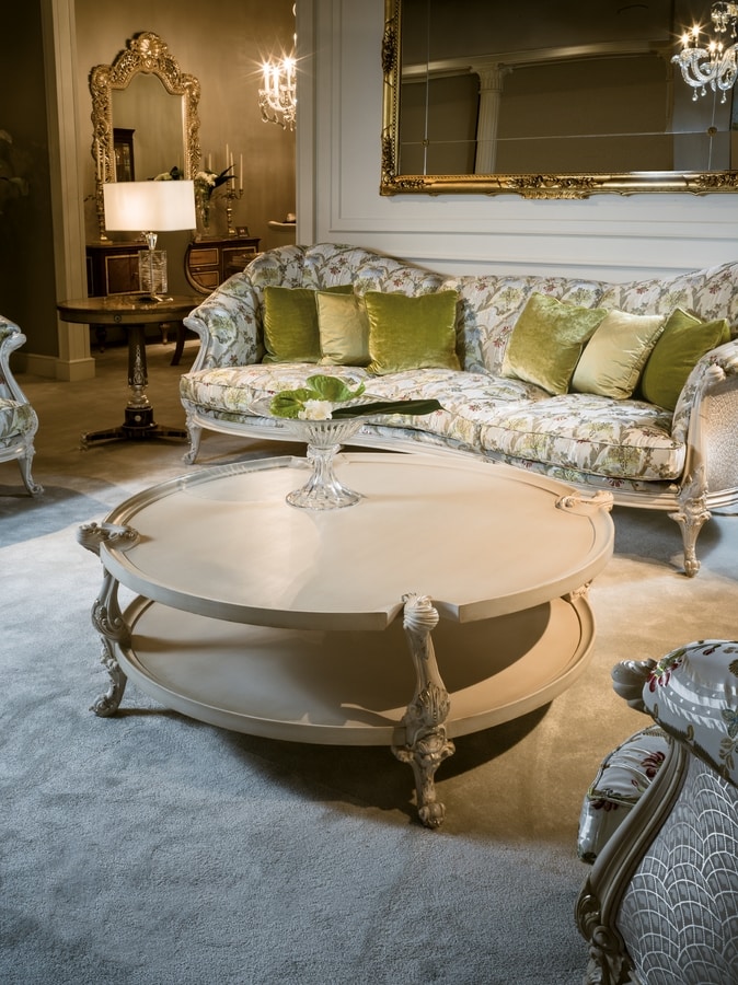 Demander prix Produits similairesCanapé de style classique laqué et poli avec des couleurs et une patine argentée et finale. Possibilité d'autres finitions. La garniture est en tissu classique Made in Italy et est sélectionnée en combinaison avec la finition. Avec nos collections de salons de luxe classiques, nous pouvons aménager les espaces de détente de la maison et la rendre accueillante tout en préservant l’élégance représentée par les différents styles. Les finitions les plus raffinées et faites à la main, ainsi que le vaste choix des meilleures soies, velours et garnitures, enrichissent notre production de salons de luxe classiques.