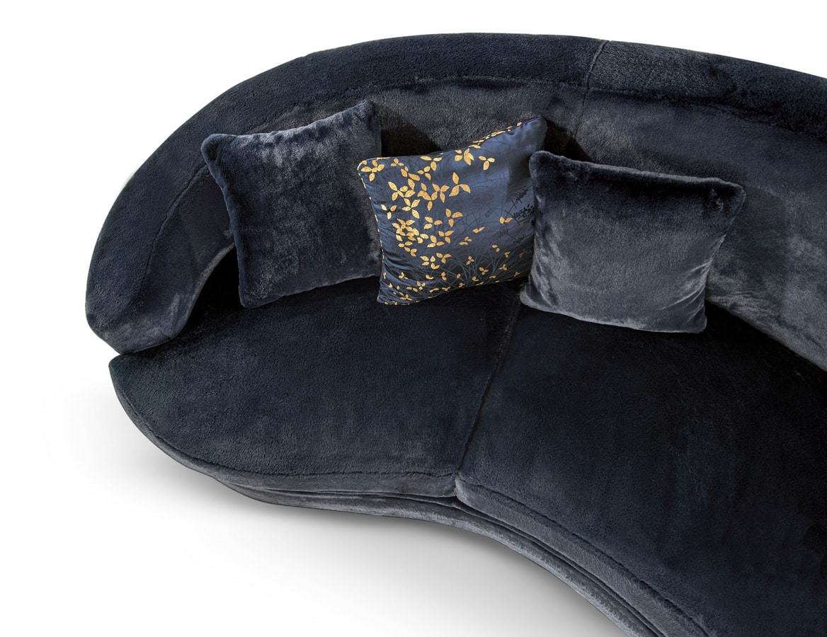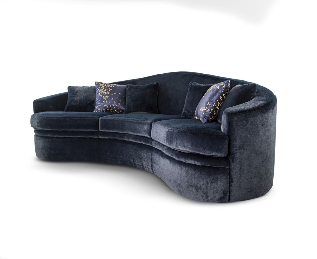 Canapé 3 places en polyuréthane expansé indéformable de différentes densités et fibre de polyester avec structure intérieure en bois. Pieds recouverts de tissu. Disponible recouvert de tissu selon les échantillons. Coussins décoratifs avec mélange de plumes. Housse non amovible.