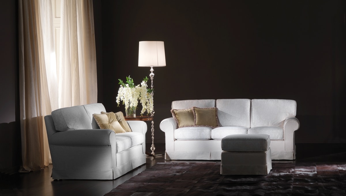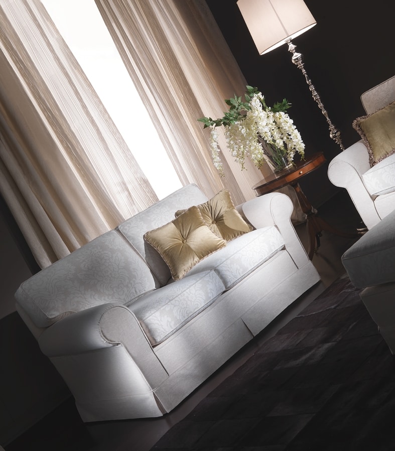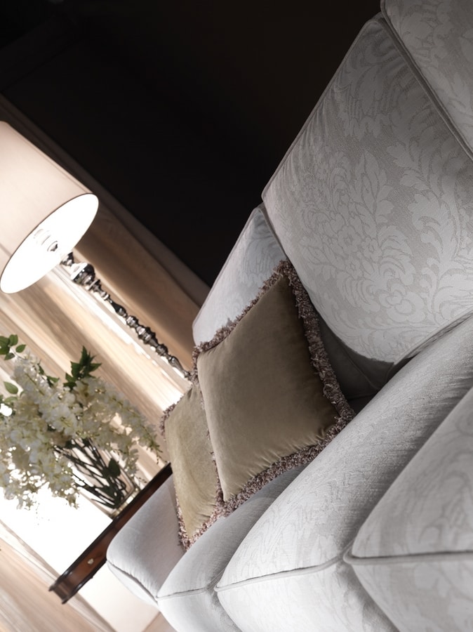 Canapé douillet et confortable avec revêtement en tissu amovible et structure en bois massif. Personnalisé disponible.