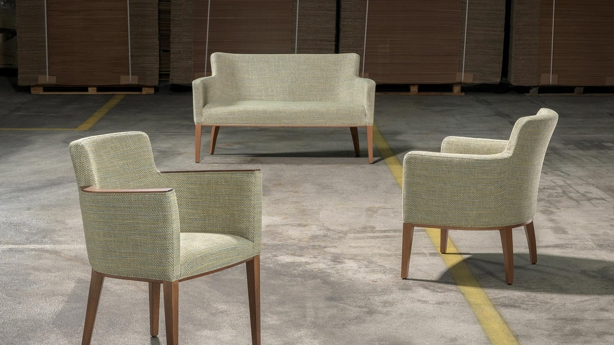 Canapé en bois, ligne classique et intemporelle, adapté à tous les environnements raffinés.