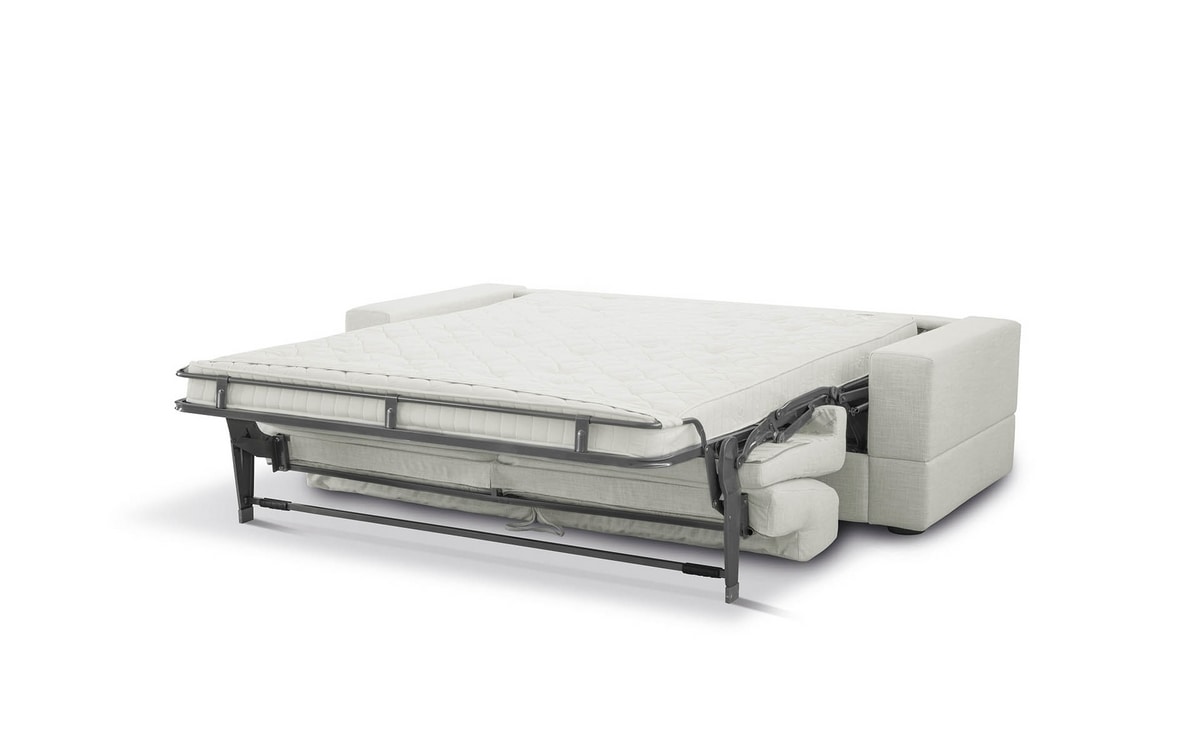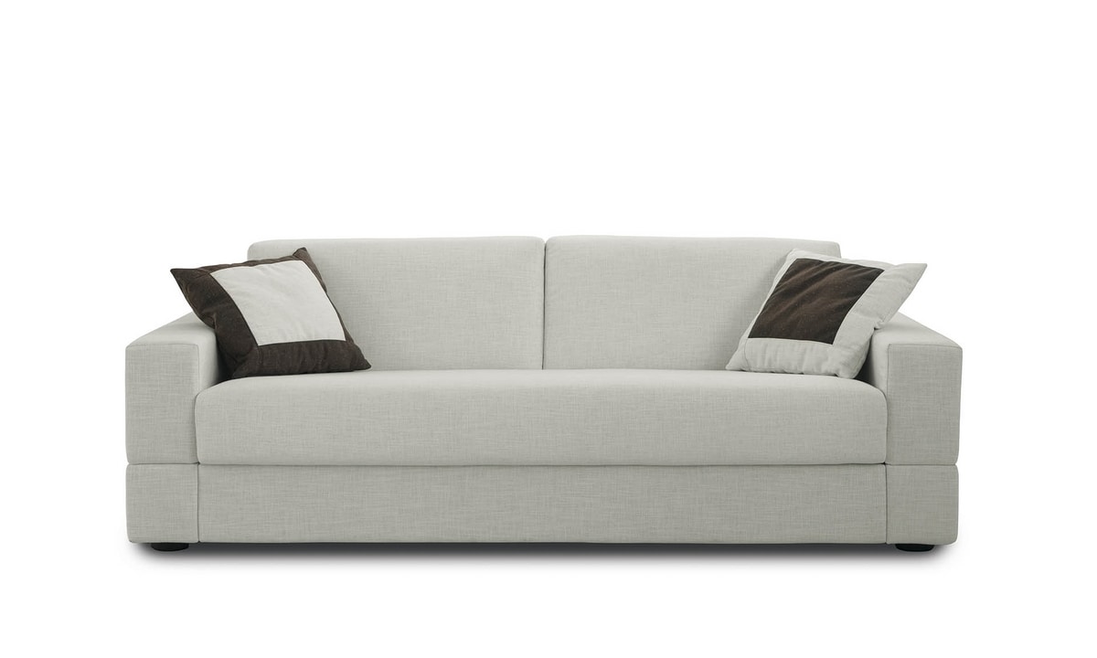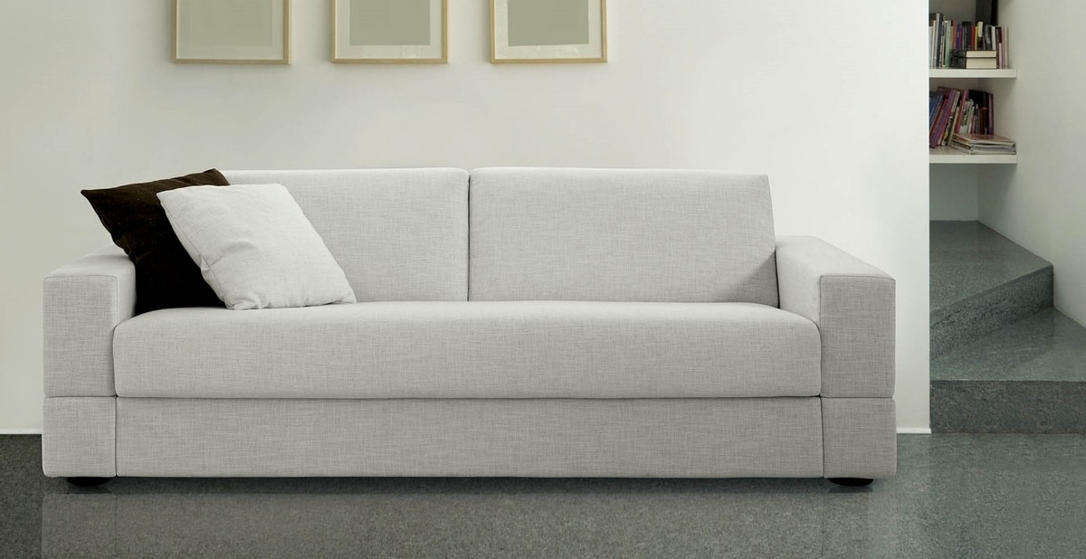 Ses lignes pures répondent aux exigences actuelles de dessin et de confort. Il se transforme facilement en lit offrant un confortable matelas de 200 cm de longueur. Le revêtement déhoussable est lavable selon le choix du tissu. Brian est un canapé lit avec mécanique Lampolet ; il est disponible également en fixe et est complètement démontable pour un facile transport.