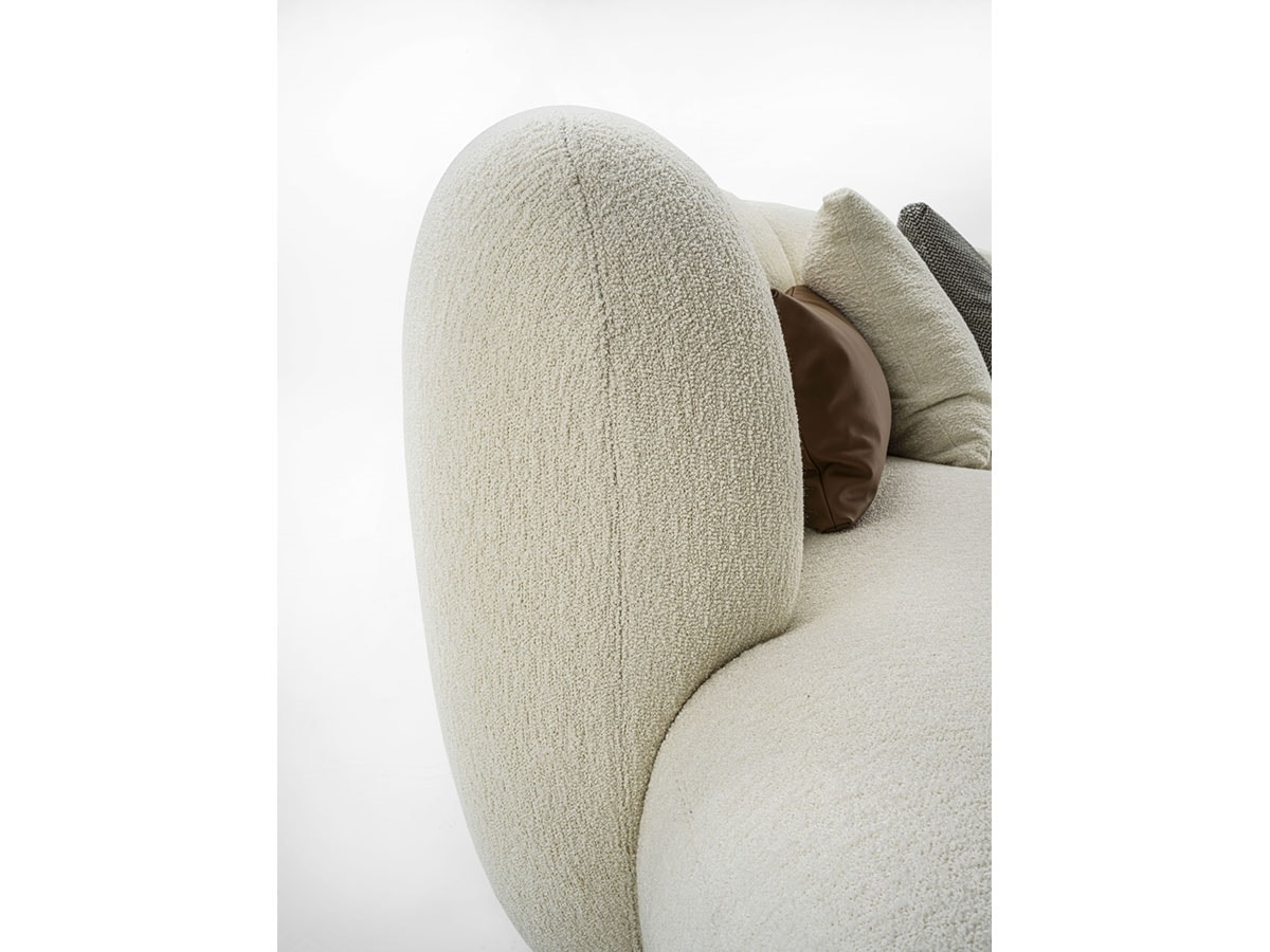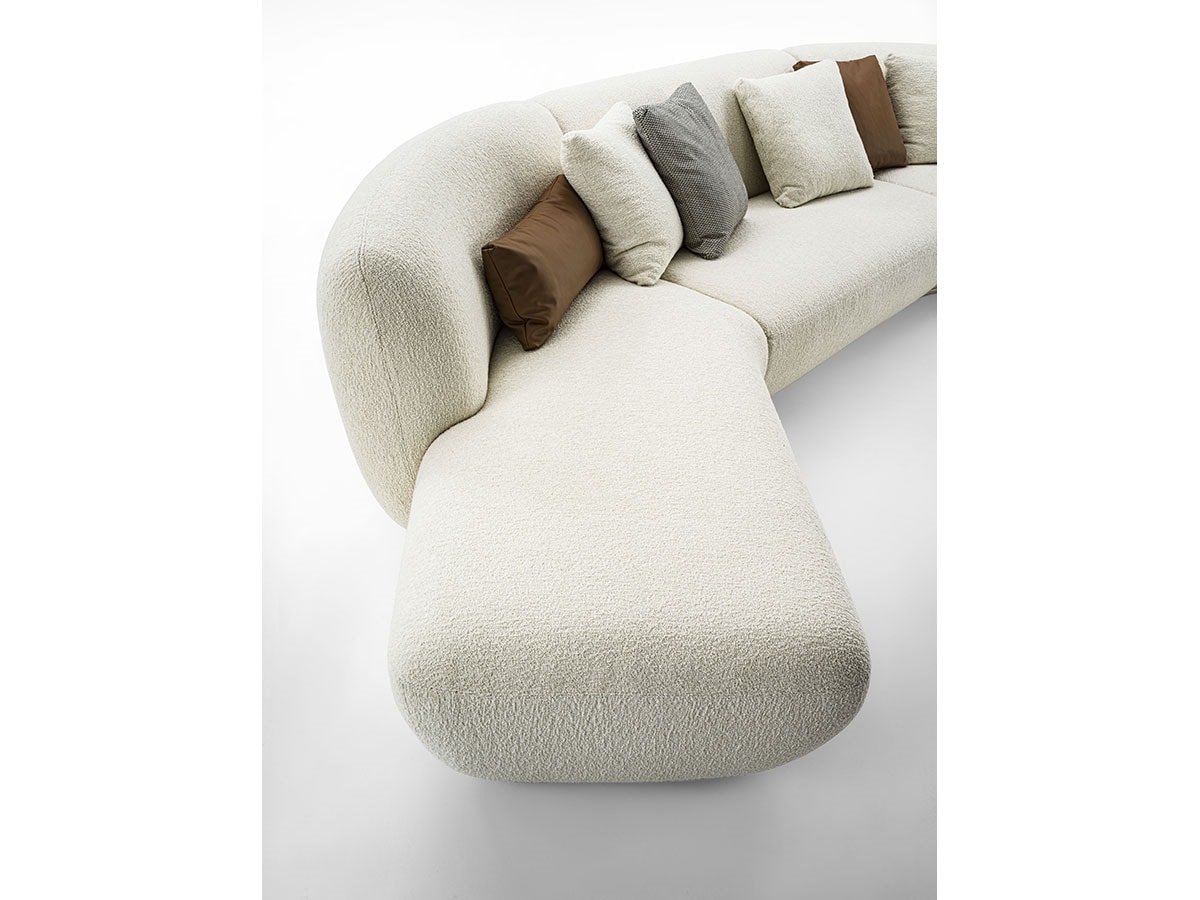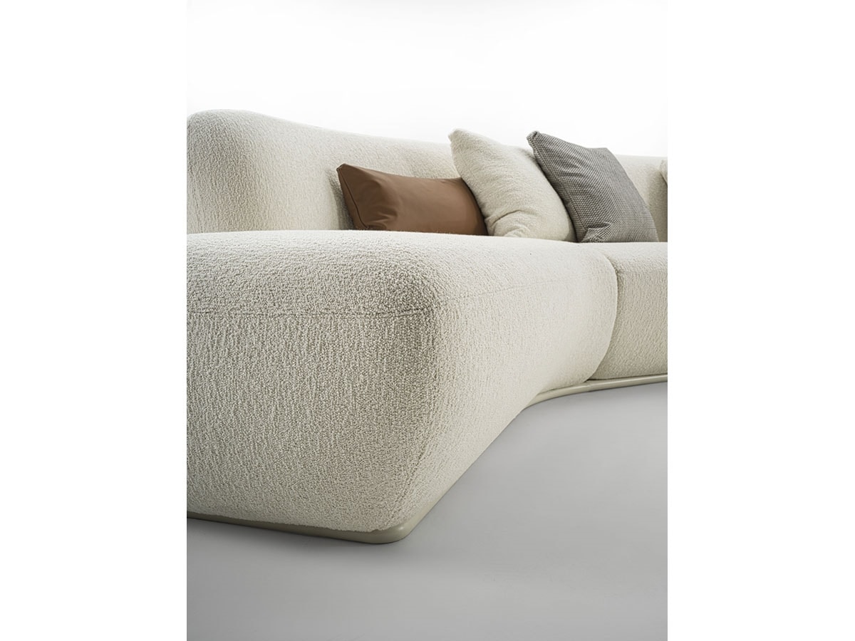 Canapé modulable caractérisé par la douceur de ses volumes. Il peut également être placé au centre de la pièce grâce à son dossier incurvé. Base en bois en finition laquée, disponible en différentes couleurs.