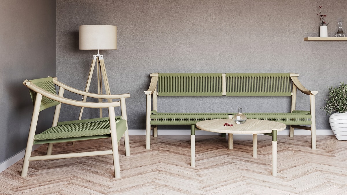 Canapé en bois, avec corde nautique