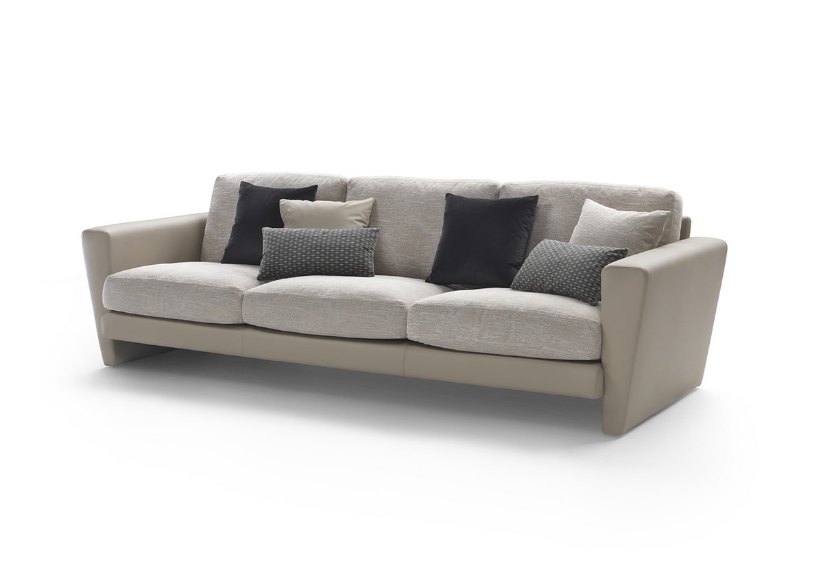 Détails raffinés dans les coutures double épaisseur, dans les courbes qui forment les coussins et les accoudoirs, évolution d'un canapé intemporel.