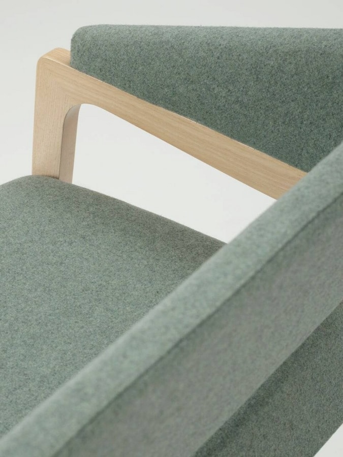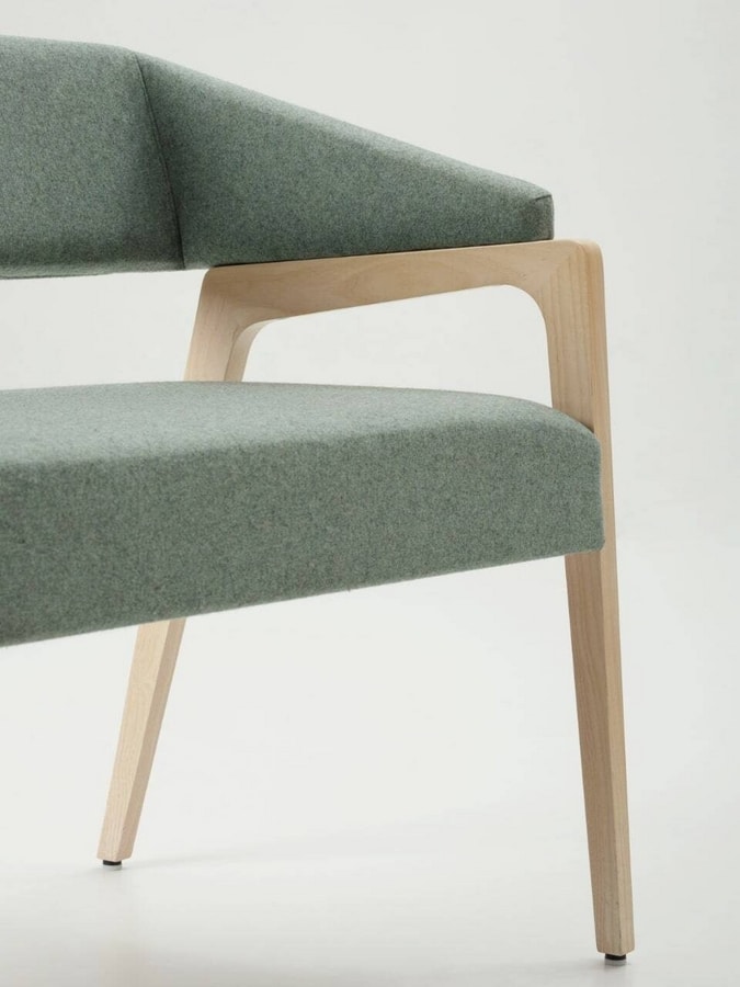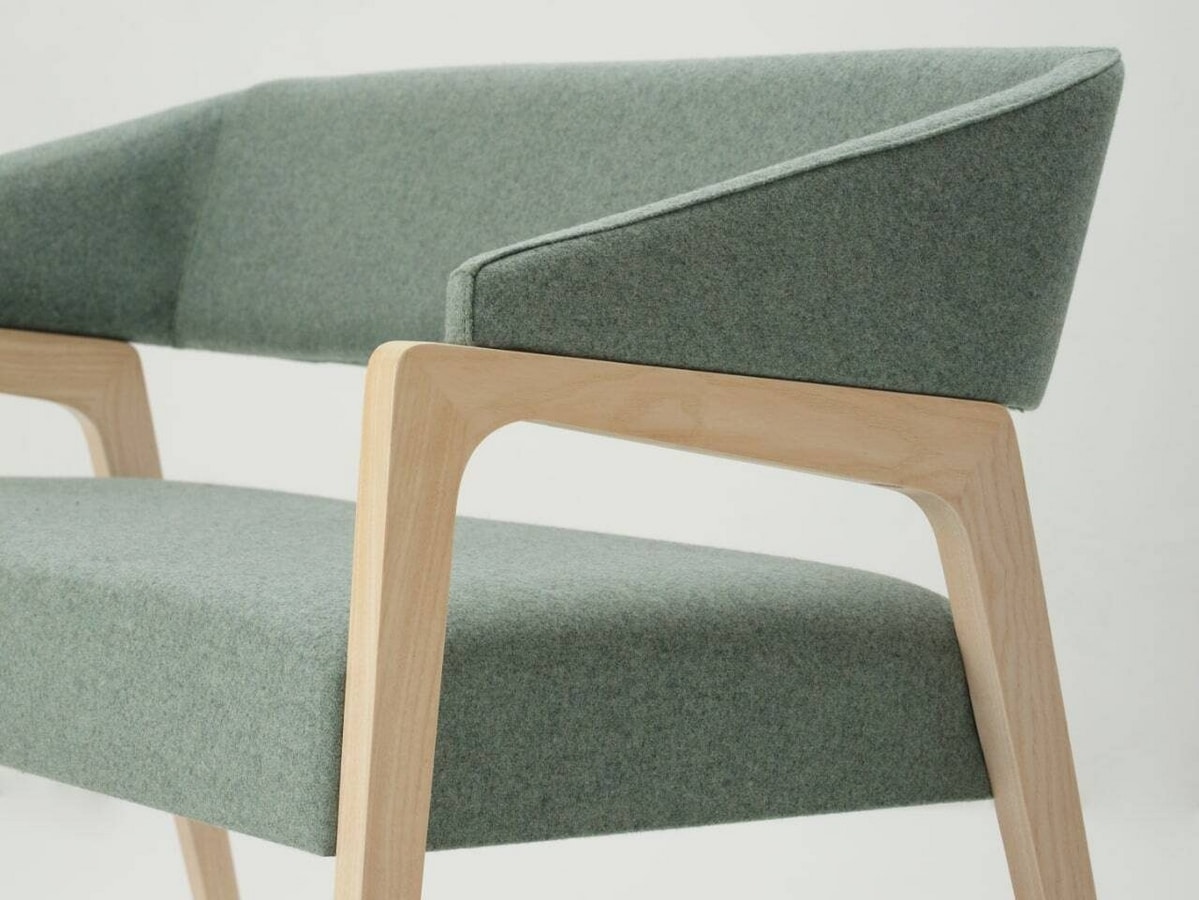 Musa a un cadre en bois de frêne massif disponible dans nos teintures standard ou dans des finitions personnalisées. L'assise et le dossier en mousses ignifuges sont recouverts de notre sélection de tissus ou personnalisés dans le tissu du client.