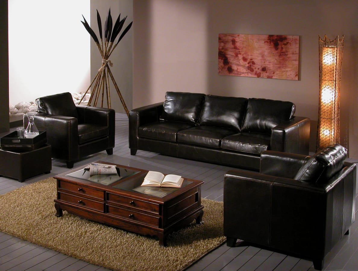 Canapé 3 places en cuir noir