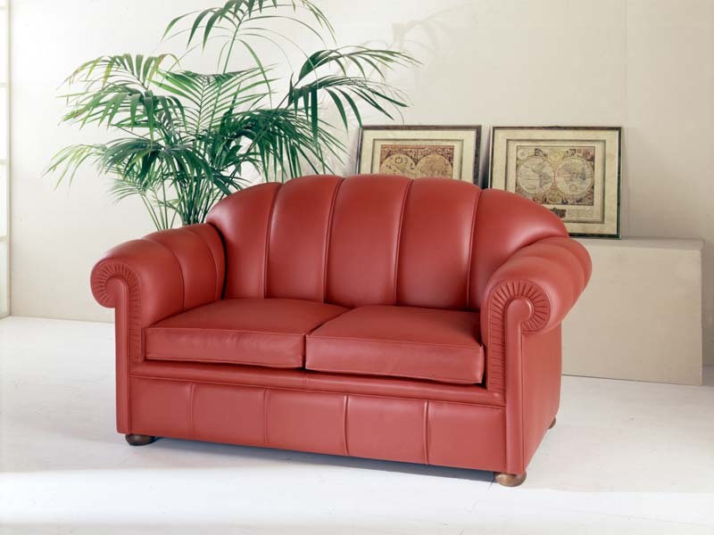 Canapé classique en cuir couvrant. Modèles design élégant et confortable faite de cadre en bois massif soutenu par ressorts en acier et rembourrés de mousse de polyuréthane et avec la possibilité d'utiliser de la mousse ignifuge. Coussin d'assise en plumes, plumes avec insert de renfort ou de mousse de polyuréthane.