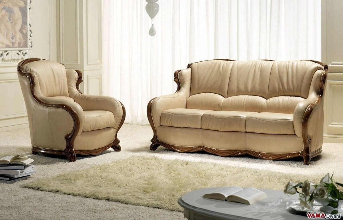 Canapé en cuir de luxe avec cadre en bois massif