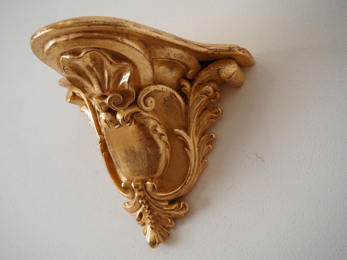 Différentes finitions possibles: dorure à la gouache à la feuille d'or 23¾ KT, imitation feuille d'or, feuille d'or blanc, feuille d'argent; dorure de mission, laquage de toutes les couleurs et décorations peintes à la main.