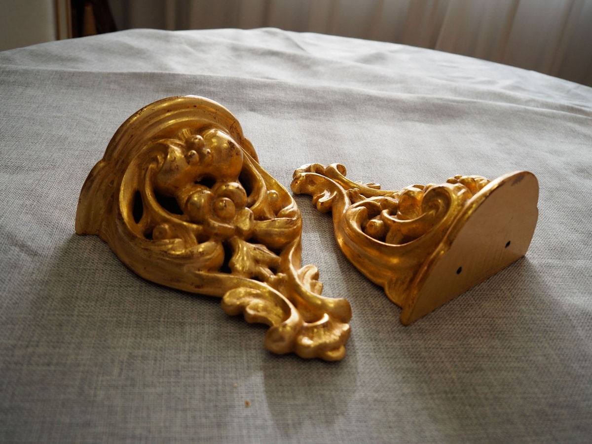 Différentes finitions possibles: dorure à la gouache à la feuille d'or 23¾ KT, imitation feuille d'or, feuille d'or blanc, feuille d'argent; dorure de mission, laquage de toutes les couleurs et décorations peintes à la main.