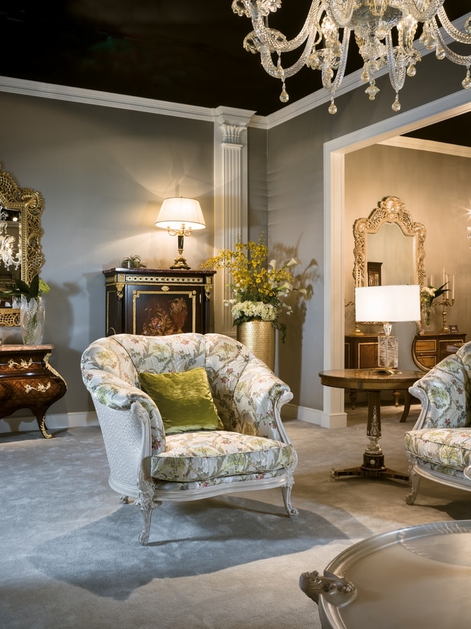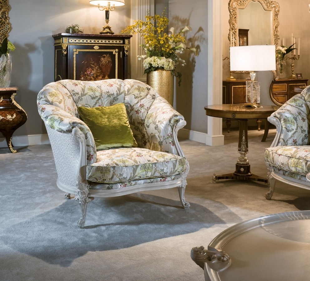 Demander prix Produits similairesFauteuil classique laqué et poli avec des couleurs et une patine argentée et finale. Possibilité d'autres finitions. La garniture est en tissu classique Made in Italy et est sélectionnée en combinaison avec la finition. Avec nos collections de salons de luxe classiques, nous pouvons aménager les espaces de détente de la maison et la rendre accueillante tout en préservant l’élégance représentée par les différents styles. Les finitions les plus raffinées et faites à la main, ainsi que le vaste choix des meilleures soies, velours et garnitures, enrichissent notre production de salons de luxe classiques.