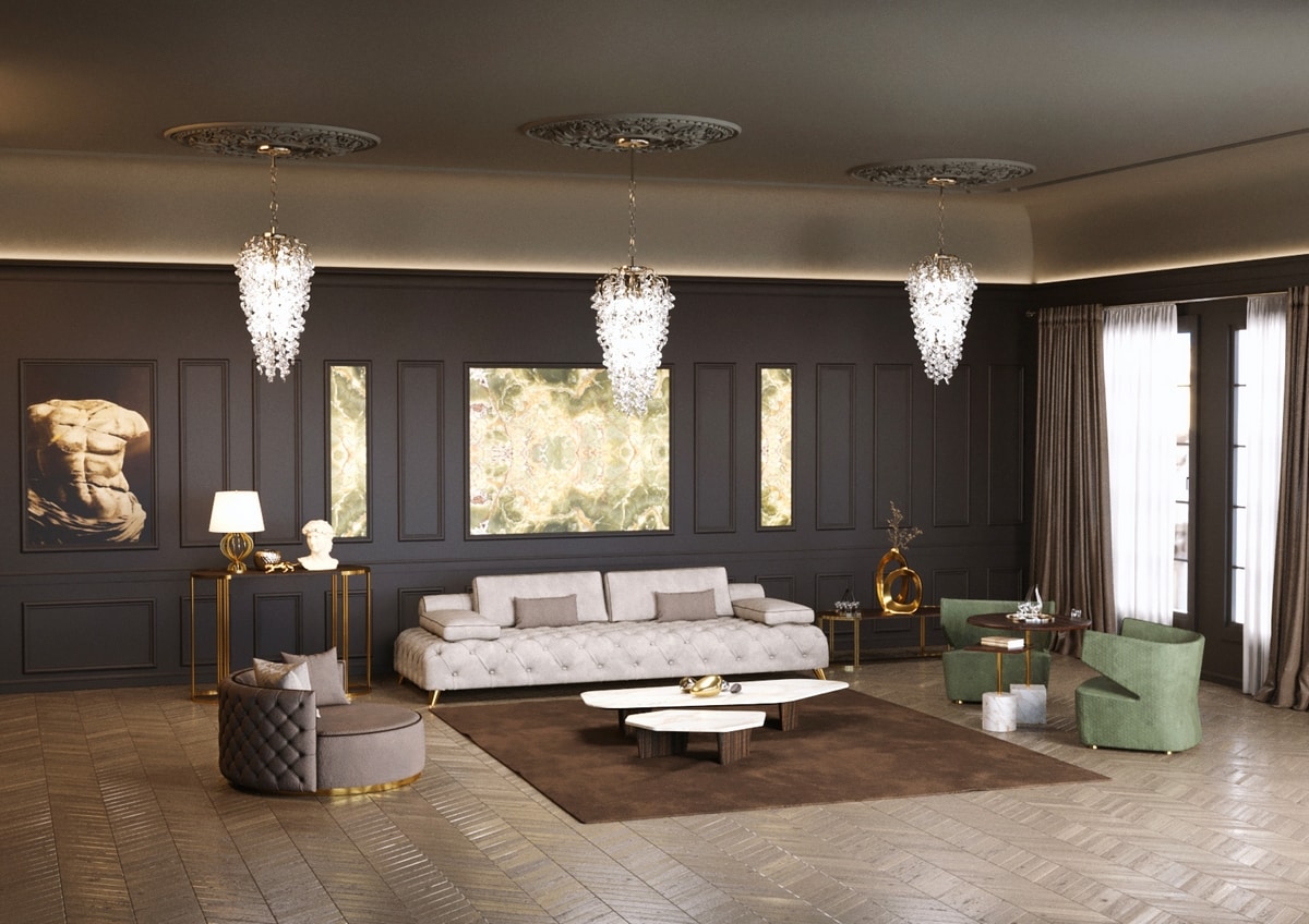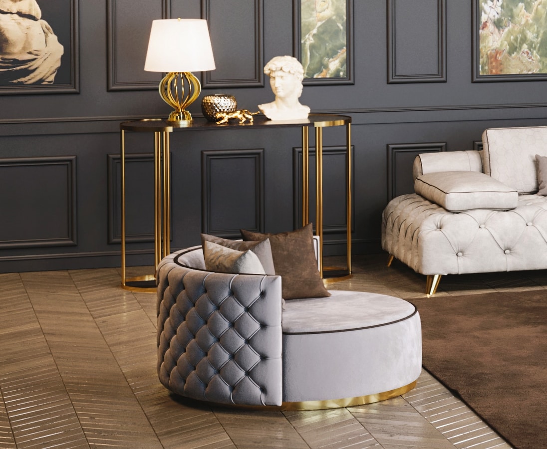 The rounded shape of the moon, its light in a dark firmament, its textured surface, its ever-changing appearance depending on the season and perspective, its mystery that still fascinates today, have inspired us to create these pieces where the curved, soft, captivating, reassuring shapes are the denominator of the environments and individual pieces. A light nubuck sofa that brightens up a room with dark walls, precious natural surfaces such as wood and marble or skilfully handcrafted tops such as polished stucco, pieces that look different every time depending on the size, material and fabric colour, pieces that stand out both in modern settings and with classic architectural details. A look at the trends of the moment, but with a firm eye on the beauty and uniqueness of each piece that, like the moon, goes beyond fashion and finds its rightful place in every place or time.