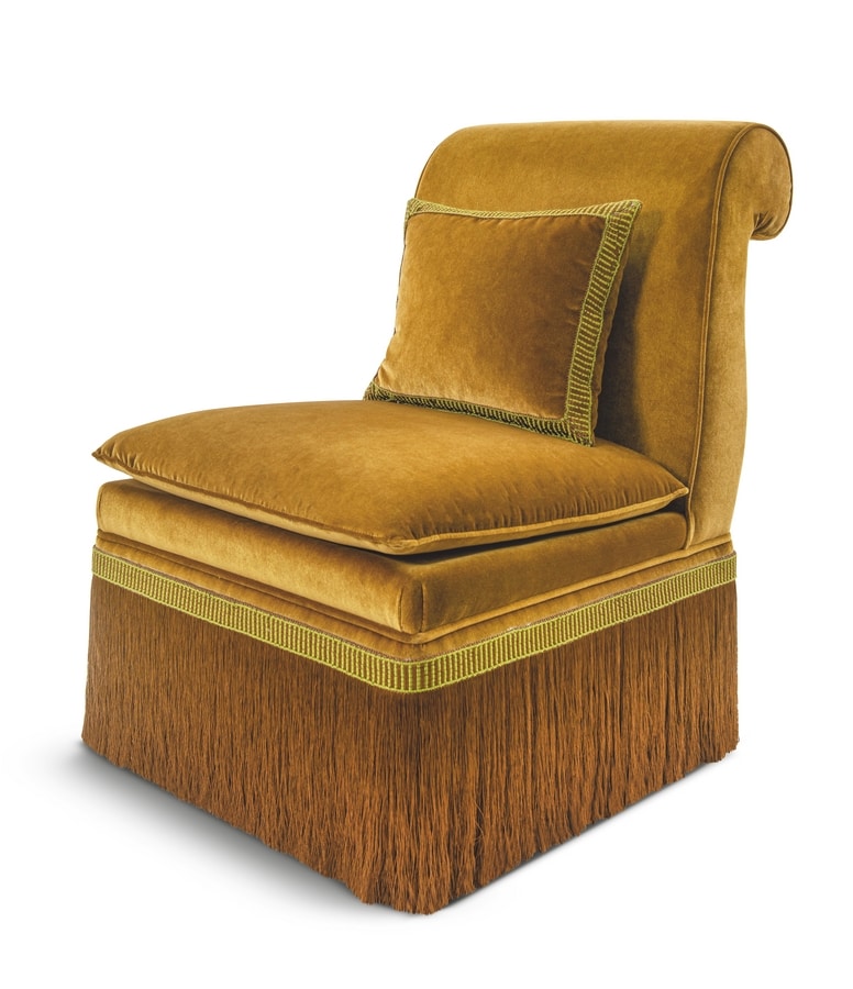 Chadin pantoufle rembourré en velours doux, avec un coussin assorti et une élégante frange décorative à la base.