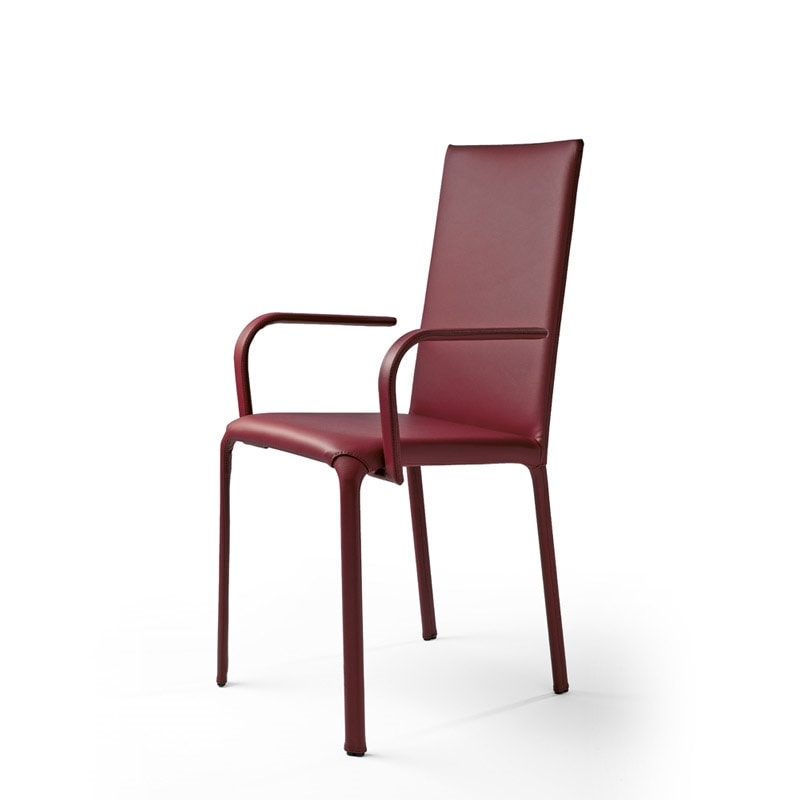 Chaise avec structure en tube d'acier verni, entièrement en cuir ou cuir souple recouvert de. Couleur à la demande. Recherche et développement: Julia.