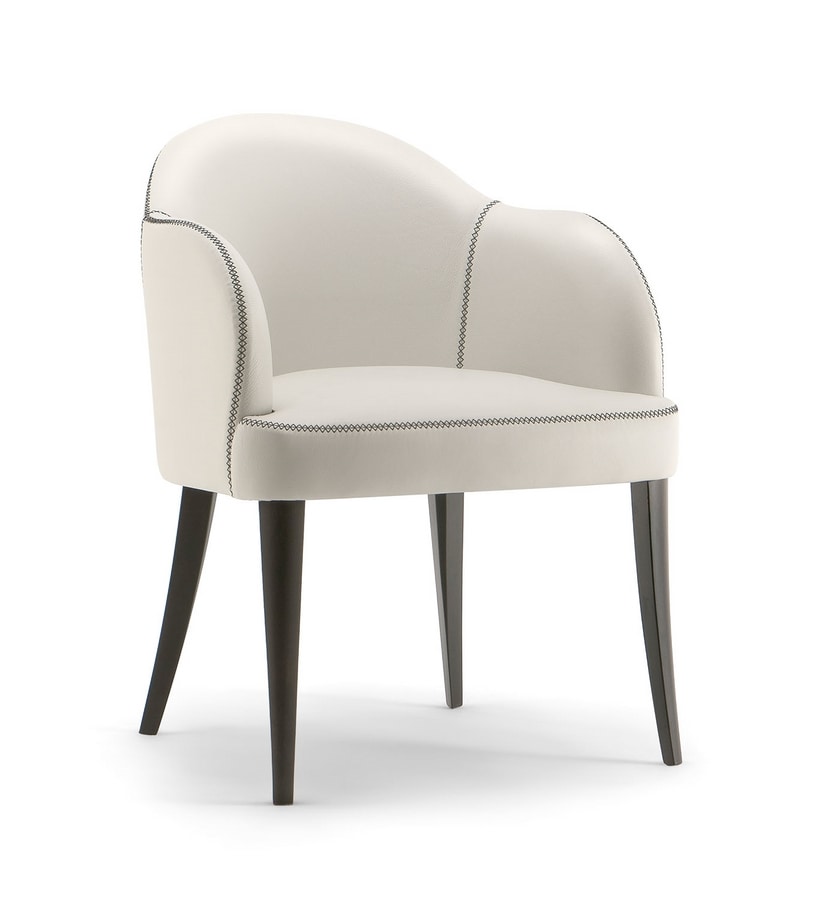 Parfaitement adapté aux environnements chics et sophistiqués, le fauteuil Chicago entièrement rembourré enveloppe dans ses lignes douces, son confort et son design. La surpiqûre artisanale qui contraste avec la teinte du rembourrage crée une ligne accrocheuse le long des contours. Les pieds en bois massif enrichissent le siège confortable et élégant. Grâce au large choix de tissus et de teintures pour bois de haute qualité, ce produit est hautement personnalisable.