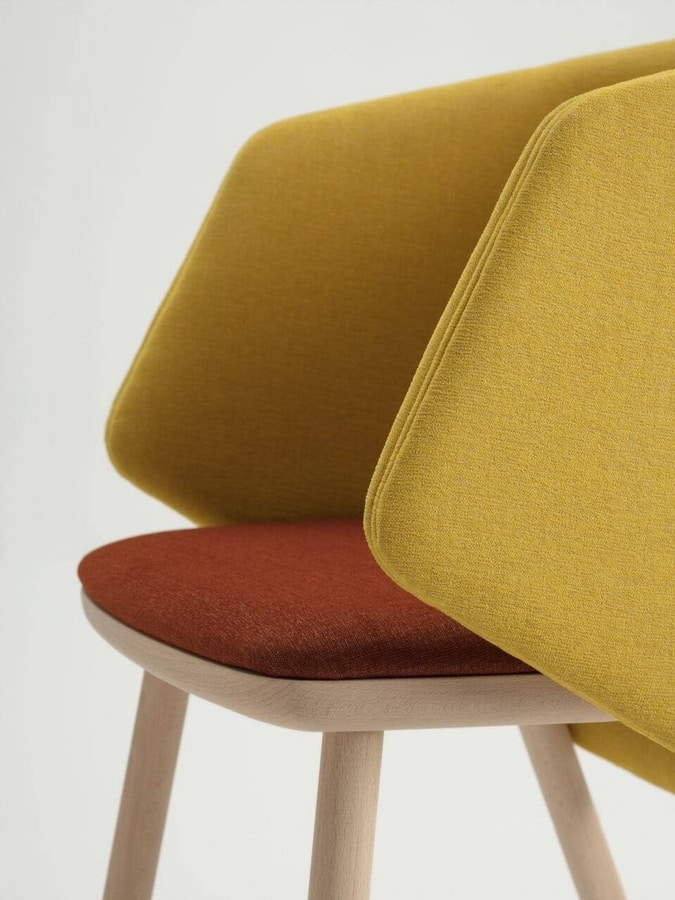 L'assise large et le dossier acoustique en mousses ignifuges sont recouverts de notre sélection de tissus ou personnalisés dans le tissu du client.