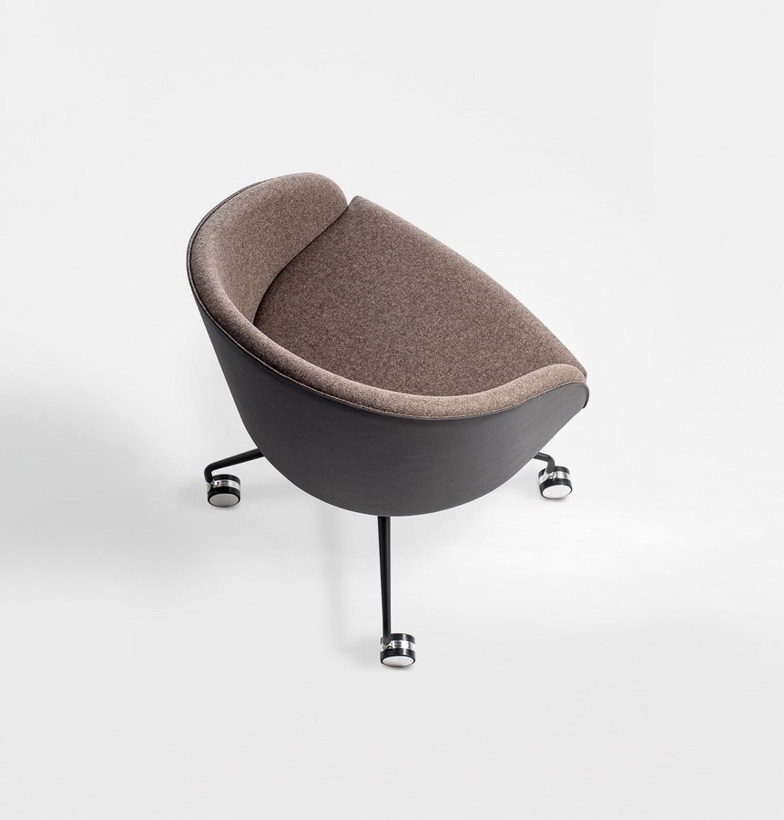 Fauteuil et canapé 2 places pour espaces d'attente ou de réunion. Piétement luge en acier époxy noir, blanc ou chromé. Complètement tapissé, disponible en version unicolore ou bicolore.