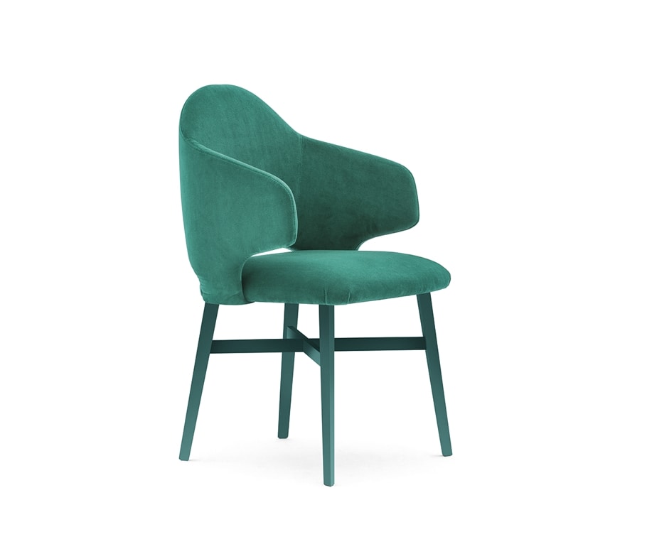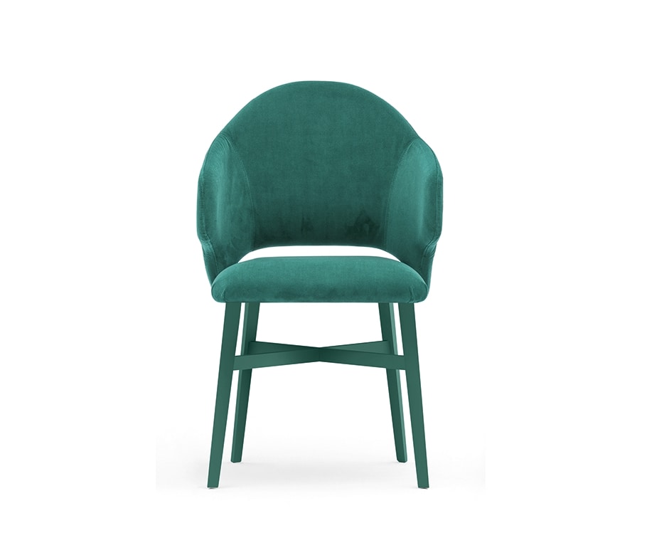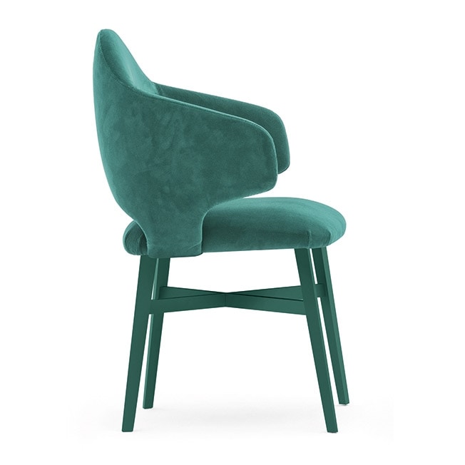 Fauteuil en bois avec dossier et assise en contreplaqué. Rembourré sur le cadre avec 4 pieds en bois de hêtre massif.