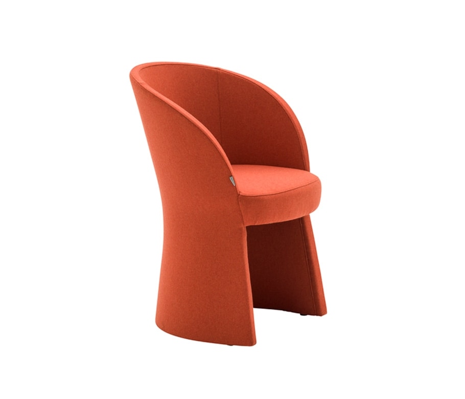 Fauteuil, coques en mousse injectés. Rembourrage sur la structure. Assise sanglé.