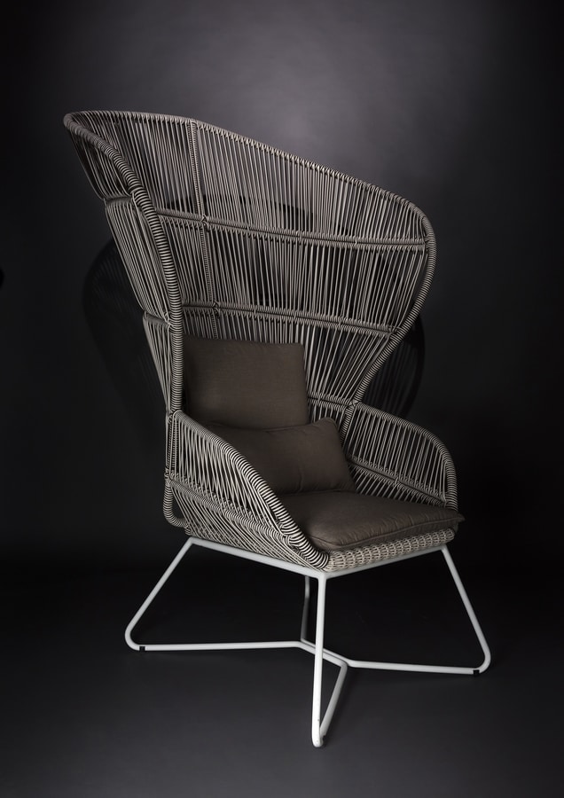 Fauteuil synthétique en rotin, avec un dossier élevé