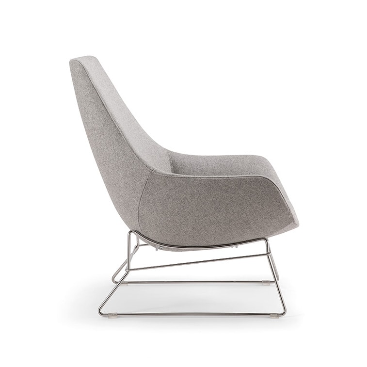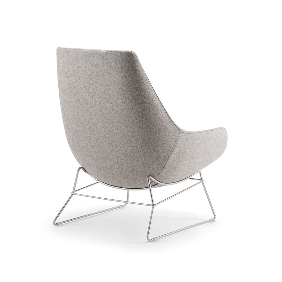 La collection s'enrichit d'une version lounge, cosy et enveloppante, conçue pour le repos et la conversation. Le fauteuil s'ouvre pour être utilisé dans les zones d'attente et de réception ou dans les zones de travail informelles. L'image change à mesure que la base change.