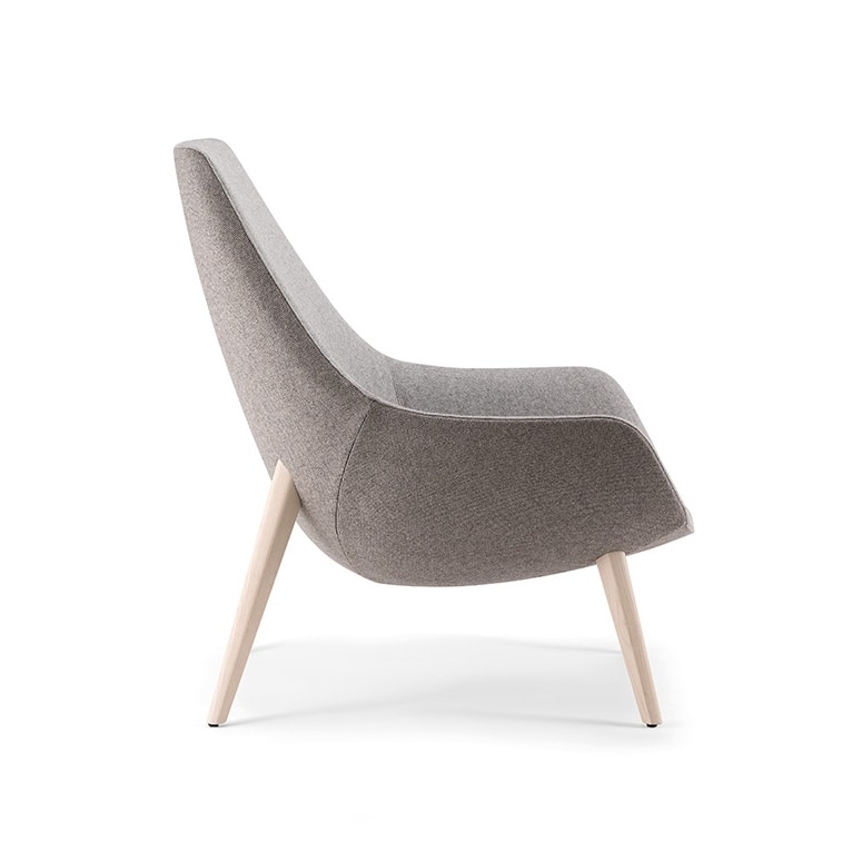 La collection s'enrichit d'une version lounge, cosy et enveloppante, conçue pour le repos et la conversation. Le fauteuil s'ouvre pour être utilisé dans les zones d'attente et de réception ou dans les zones de travail informelles. L'image change à mesure que la base change.