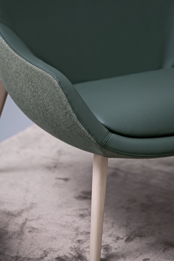 Chaleureux et domestique avec les pieds en bois, technique et moderne avec la base en aluminium moulé sous pression, informel et léger avec la base en fil d'acier chromé.