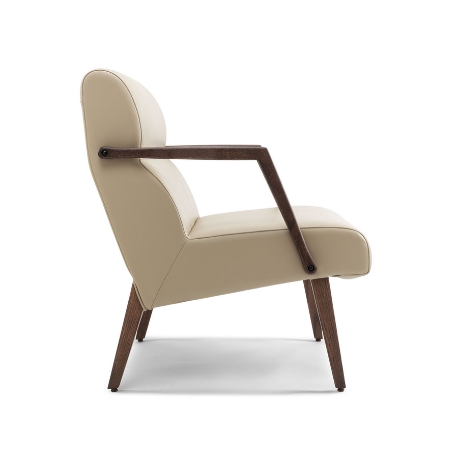 La collection de meubles rembourrées d'Atsa, avec un fauteuil, un canapé-salon et un tabouret, rend hommage aux années 1950. Ses élégants jambes en bois soutiennent une coquille rembourrée sinueuse, offrant une relaxation immédiate à quiconque s'y installe. La collection comprend deux versions d'ATTESA: 01 avec un accoudoir en bois qui relie le dos au siège transversalement, et 02 avec un accoudoir en L classique. Les deux modèles sont idéaux pour orner les espaces avec un flair contemporain et distinctif raffiné.