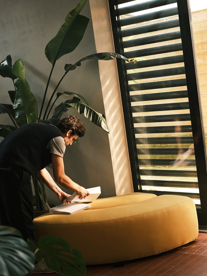 Disponible également avec dossier, accoudoirs et table basse en métal, DOTLINE se distingue par son équilibre entre praticité et esthétique. Ses formes douces et son design essentiel permettent de l’intégrer dans n’importe quel contexte, créant des ambiances harmonieuses et dynamiques.