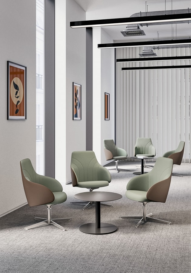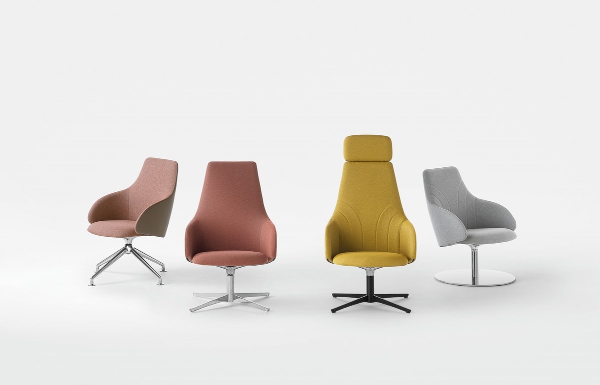 De nombreuses solutions pour aménager les espaces d'attente ou les salles de réunion avec une touche personnelle raffinée. KONTEA peut avoir un dossier lisse ou avec des surpiqures linéaires, à choisir parmi différents types de revêtements, unicolore ou bicolore, en plus des différentes propositions de piètements, fixes ou pivotants.