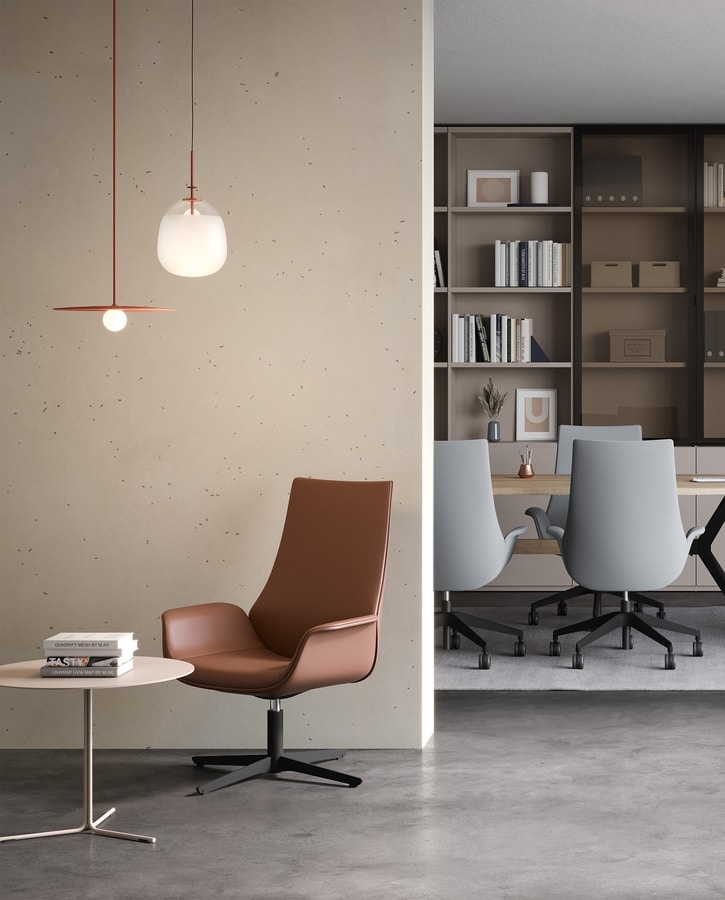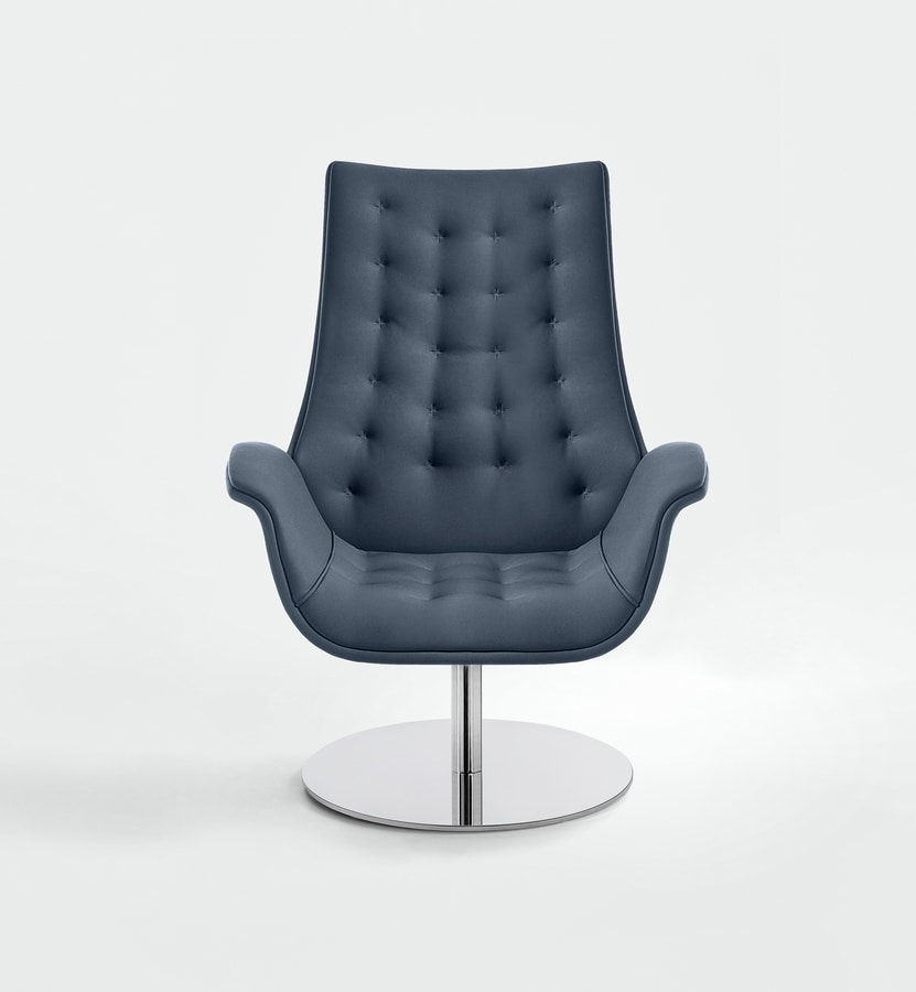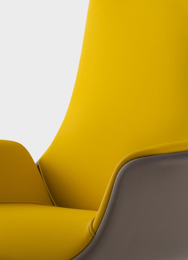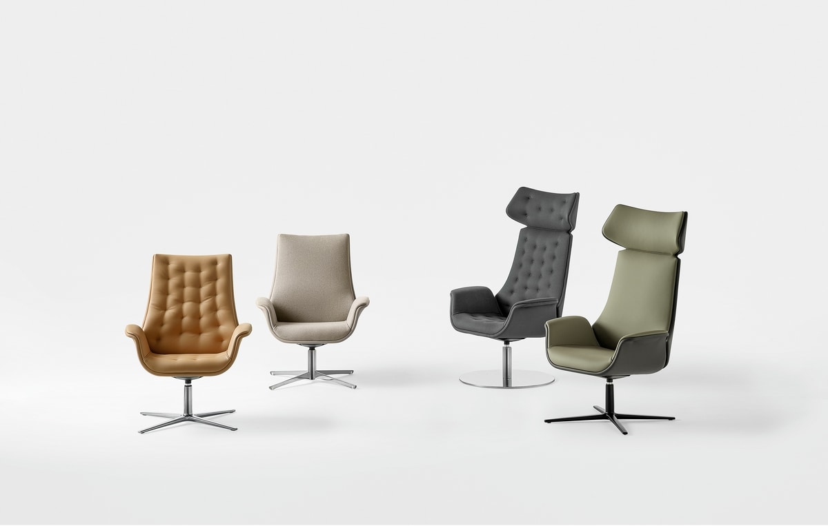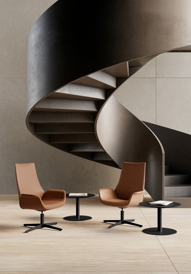 Fauteuil pour zone relax, salles d’attente et de conversation, avec différentes solutions de piétements fixes et pivotants.