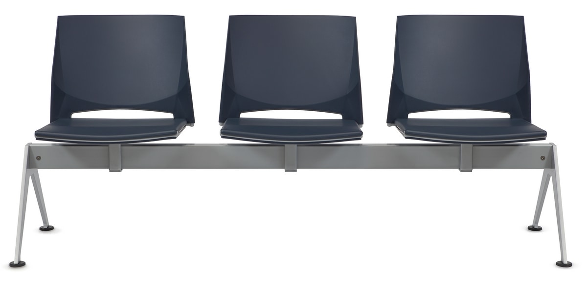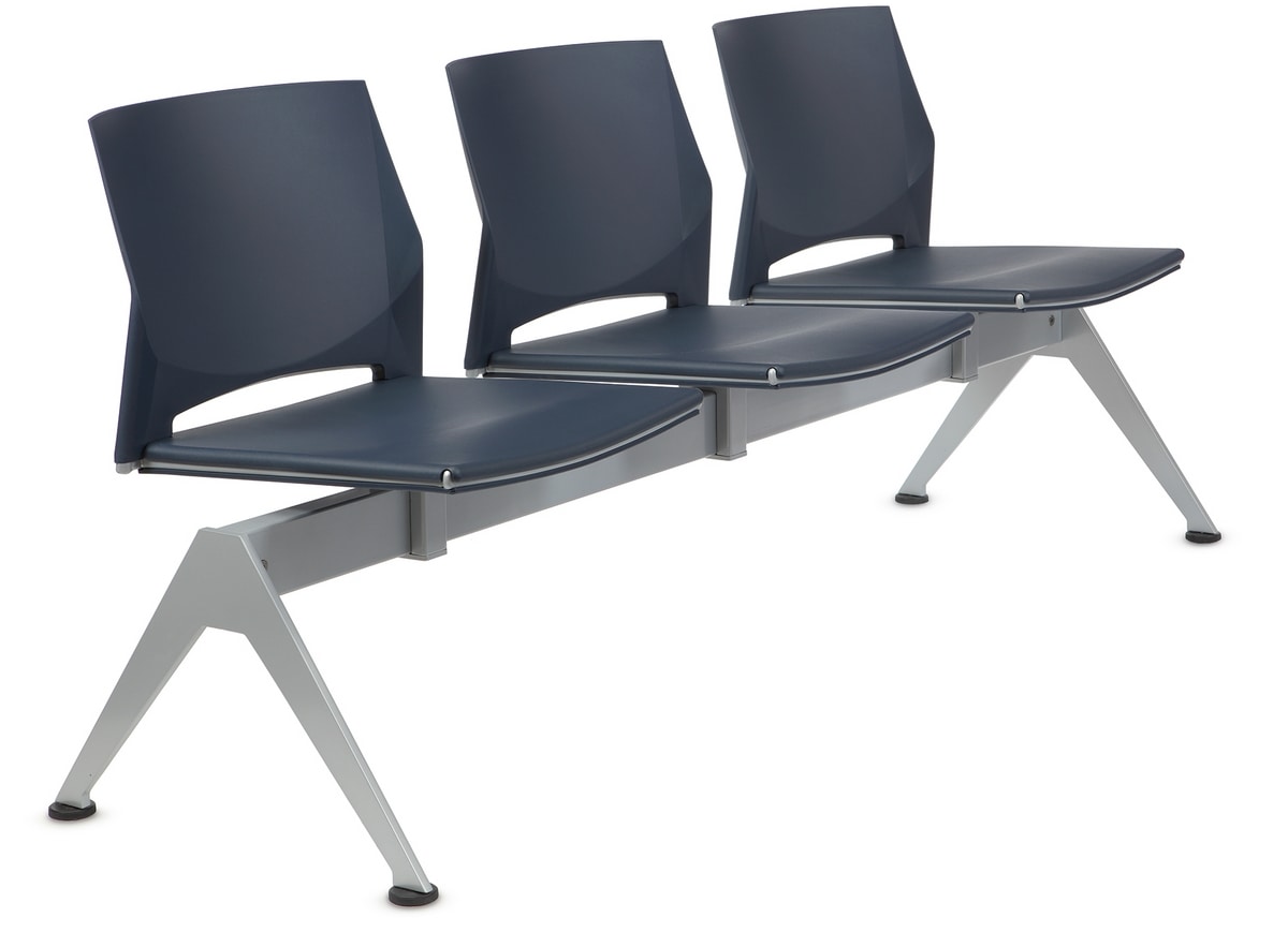 Sièges sur poutre avec siège et dossier en copolymère disponibles en plusieurs couleurs.