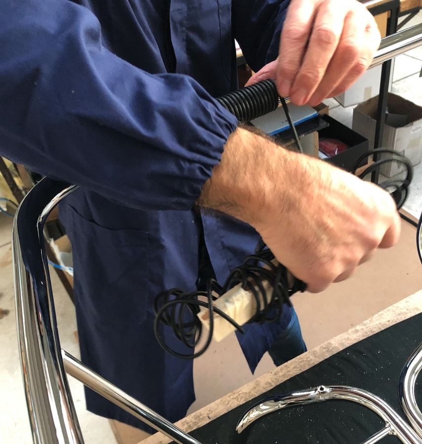 Fauteuil avec structure tubulaire apparente en chrome brillant ou peinte avec des poudres époxy dans les couleurs RAL de votre choix. Convient aux emplacements intérieurs et extérieurs. Demande de cordon en cuir naturel ou teinté noir pour les accoudoirs.