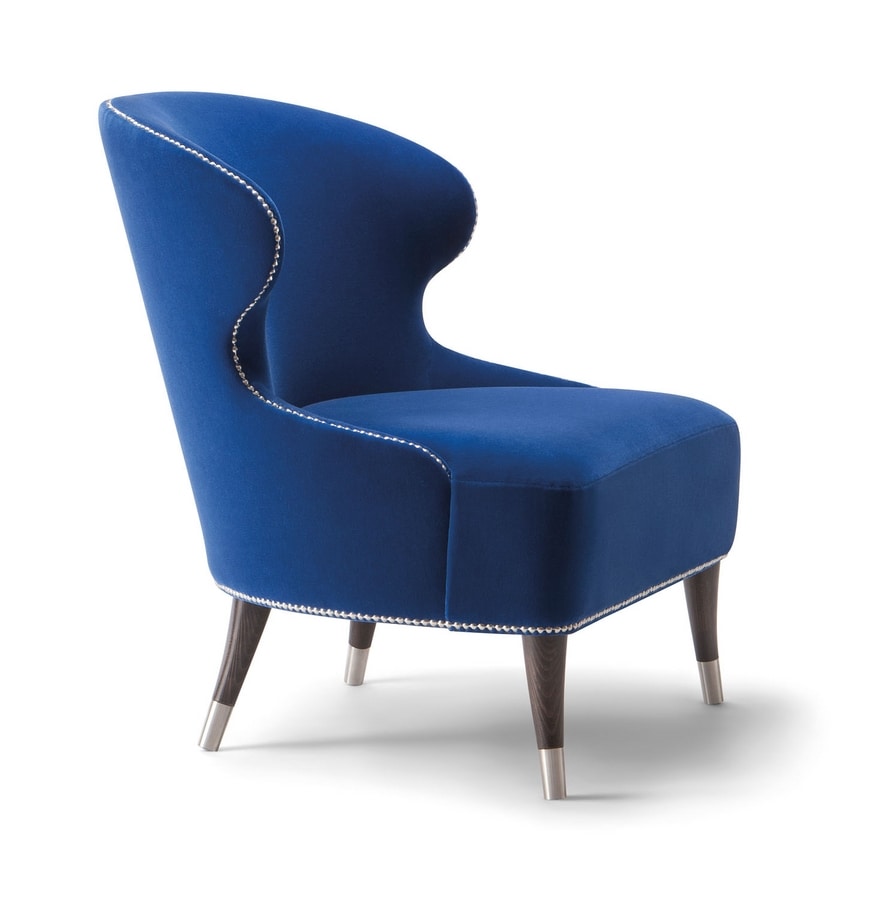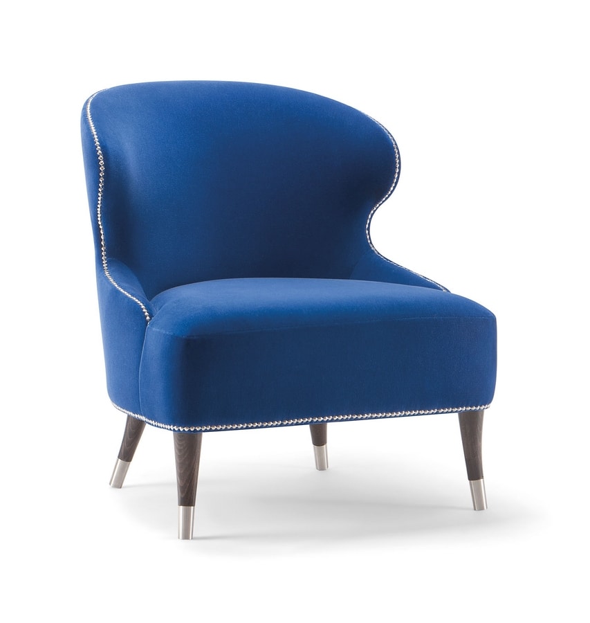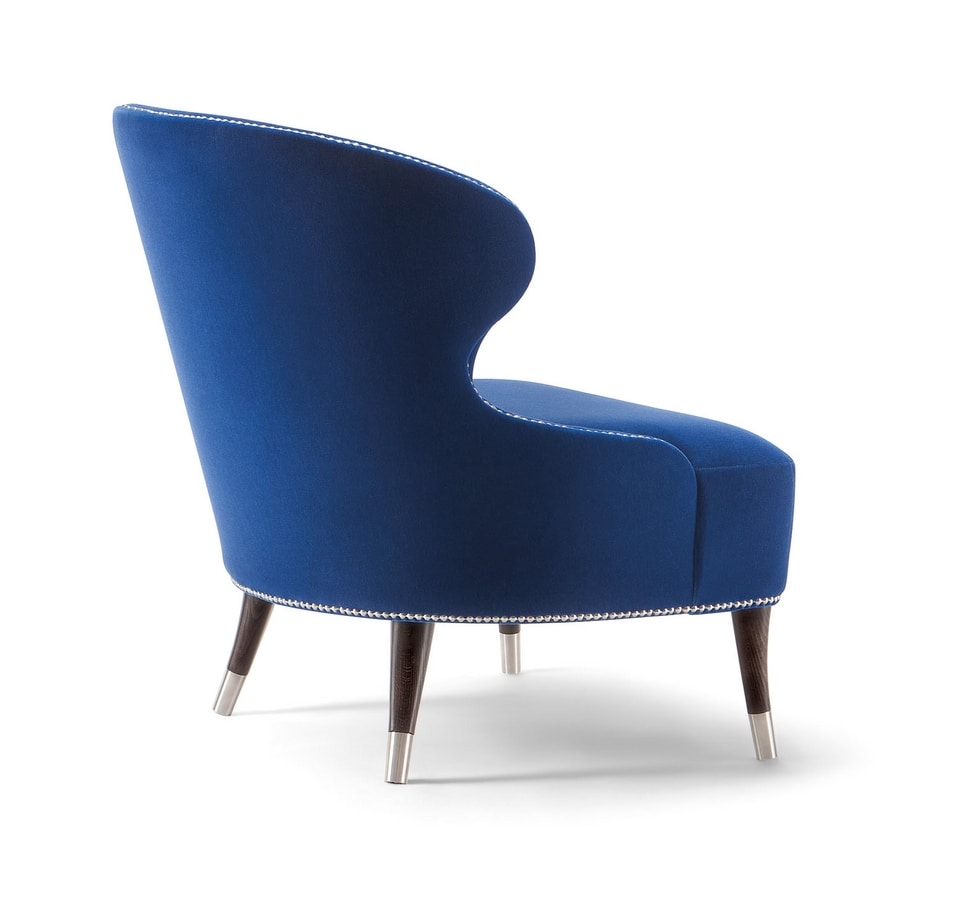 Disponible également comme chaise d'appoint et tabouret de bar, cette chaise longue élégante offre un grand confort et une touche sophistiquée à n'importe quel intérieur, en particulier lorsqu'elle est associée à des pièces assorties. Son cadre en bois massif assure également solidité et durabilité, adapté aux salons d'hôtels, bars et restaurants. Grâce à la large gamme de tissus, de capuchons métalliques, de clous et de teinture pour bois, ce produit peut être parfaitement assorti à n'importe quel espace intérieur.
