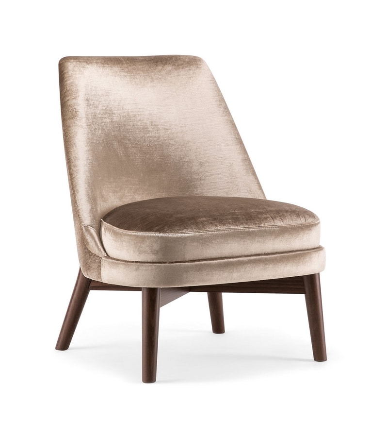 Le détail des pieds en bois, qui continue de s'enrouler autour du dossier, est caractéristique de cette collection. Les pieds arrondis en hêtre massif créent le look caractéristique de la collection, évoquant un cadre des années 1970 avec un appel moderne et minimaliste. L'assise et le dossier peuvent être recouverts d'une large gamme de tissus et de cuirs pour rehausser davantage la structure en bois.
