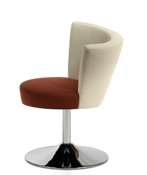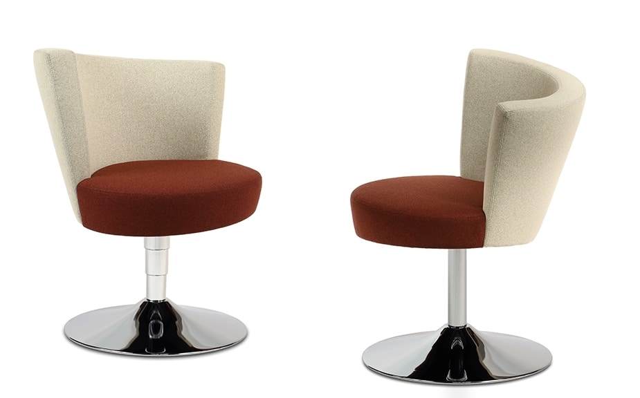 Fauteuils rembourrés et rembourrés, disponibles en deux tailles et également en version tabouret avec ou sans dossier. Versions disponibles sur structures métalliques: avec 4 pieds fixes peints ou chromés, avec 4 rayons effet chromé brillant et pivotants avec roues ou pieds, avec 5 rayons peints et pivotants avec roues ou pieds, sur socle pivotant chromé. Pour les versions 5 étoiles et calicot également disponibles avec des variantes avec vérin à gaz et tabouret avec ou sans repose-pieds.