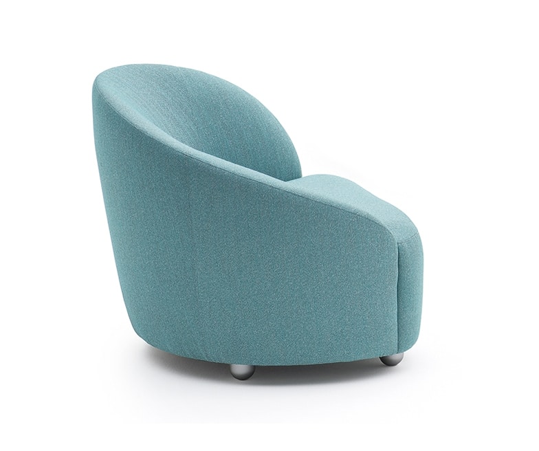 Lounge fauteuil avec structure en bois multipli. Assise sanglé et rembourré. Avec des pieds en plastique couleur aluminium. Canapé disponible en versions droite(art.00166DX) et gauche(art.00167SX).