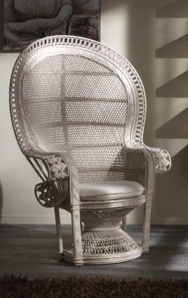 Fauteuil ethnique en rotin tissé dans des finitions en osier et en écorce.
