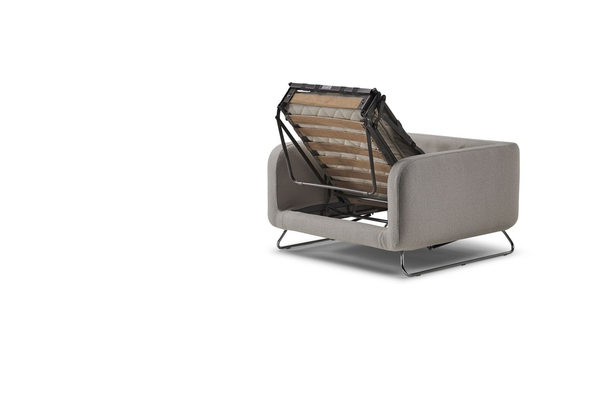 Freddie est un fauteuil convertible aux lignes légères et élancées, équipé de la mécanique Lampolet et d'une longueur de matelas de 2mètres. Du haut de ses 16cm, le canapé-lit Freddie offre, avec ses pieds en acier chromé ou en finition nickel noir, élégance et confort d'assise garanti par des coussins cale-reins confortable et moelleux. Ce canapé entièrement déhoussable s'intègrera parfaitement dans tous les intérieurs ; il est disponible dans de nombreux revêtements et en plusieurs dimensions. Freddie existe également en version fixe.