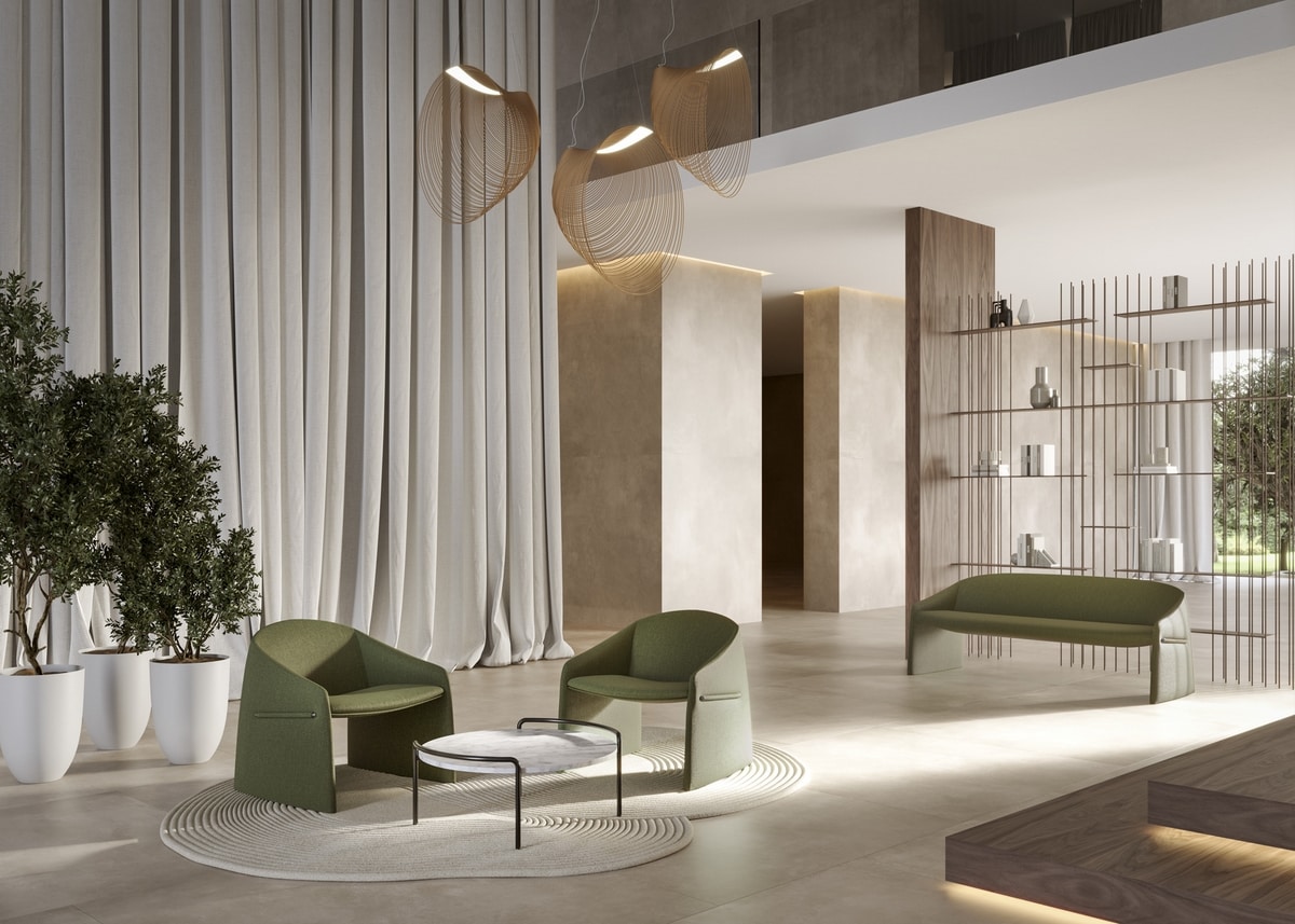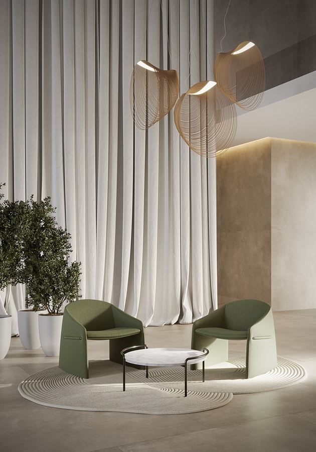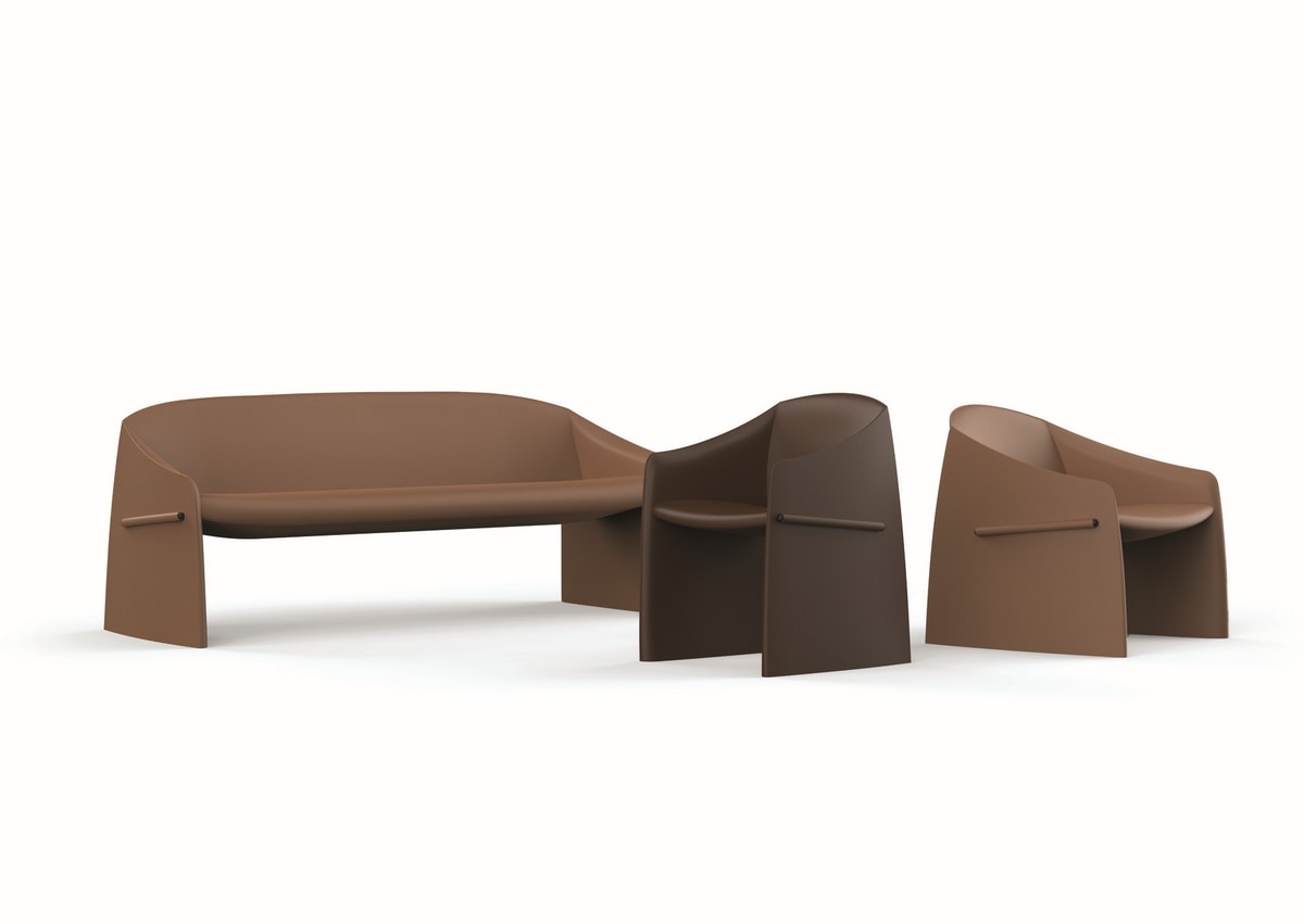 Majorette est une collection composée d’un fauteuil, d’un fauteuil avec accoudoirs et d’un canapé 3 places, où le détail distinctif est le profil latéral en matériau plastique recouvert de tissu, qui traverse l’accoudoir comme un geste graphique. Cet élément caractéristique donne du caractère au fauteuil, rompant la continuité du revêtement avec une solution inattendue, mais parfaitement équilibrée. Les géométries qui composent cette collection sont compactes, élégantes et sculpturales à la fois. Ses lignes fluides et sa forme accueillante dessinent un volume continu, entièrement revêtu de tissu ou de cuir, conçu pour se fondre harmonieusement dans des environnements contract et domestiques.