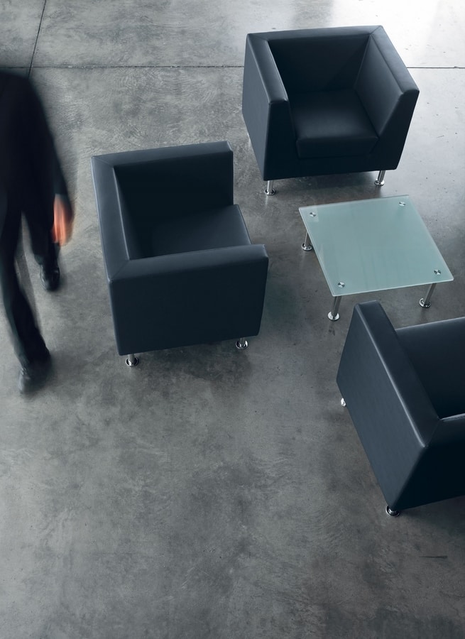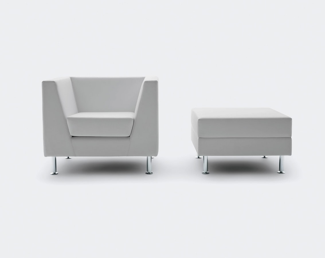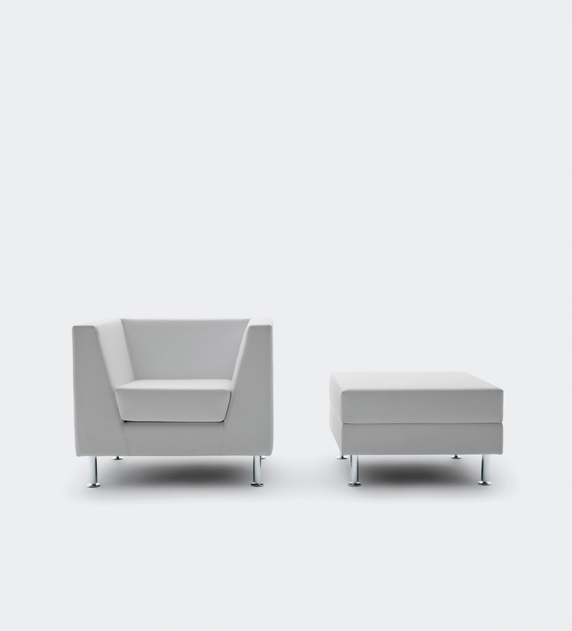 Fauteuil adapté au bureau et à la maison. Naxos est renouvelé et complété mais conserve la pureté du design qui a toujours caractérisé ce programme de sièges d'attente. Harmonie classique des formes et confort absolu sont les deux éléments de base qui caractérisent le fauteuil, les canapés 2 ou 3 places et les poufs. La nouvelle jambe à section circulaire rend la ligne générale plus actuelle et plus douce. Les finitions de très haut niveau et les proportions naturelles exaltent le fauteuil apportant également au bureau les sensations positives de la vie à la maison.