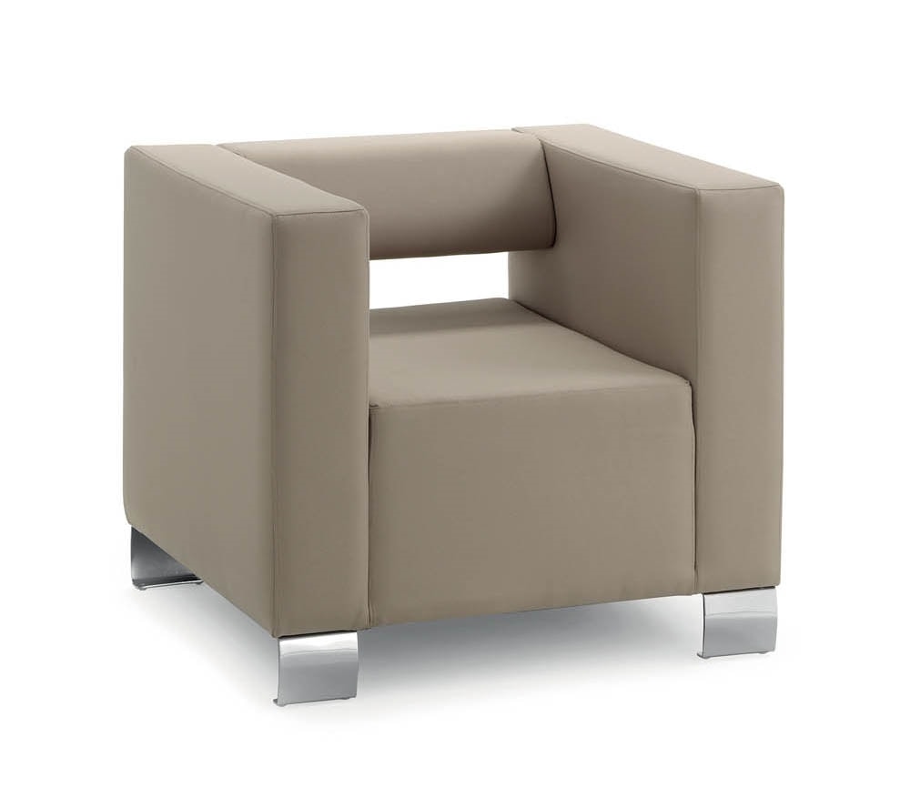 Fauteuil carré avec pieds en métal chromé. Disponible en différentes couleurs. design remarquable et essentiel.