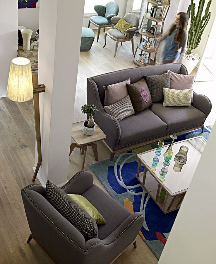 La collection contemporaine de Volpi est la meilleure expression du design italien avec une élégance innée à la fois qualitativement et en termes de finition: un jeu de sculptures et de lignes avec un contrepoint en tissu coloré.