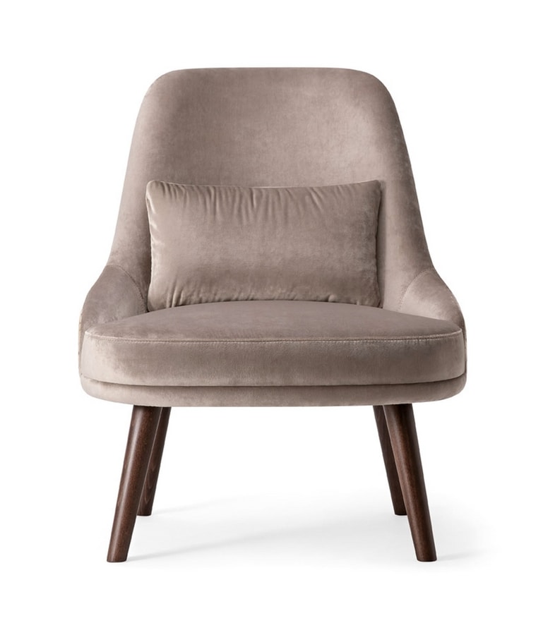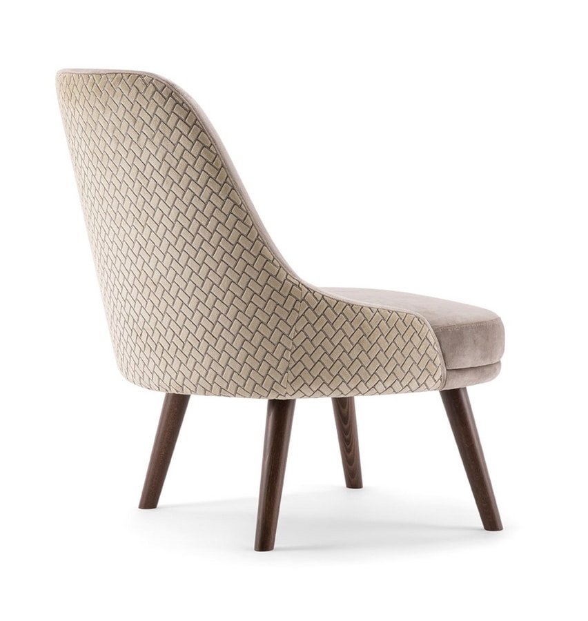 Chaise longue confortable et charmante réalisée avec des pieds en bois massif et une assise entièrement rembourrée. Le dossier haut s'incline sur les côtés pour bercer l'utilisateur dans son siège profond. Le coussin rend ce siège encore plus agréable et riche. Grâce à l'énorme offre de tissus et de teintures de bois, la chaise longue Zoe a pu être personnalisée pour s'adapter à chaque espace intérieur.