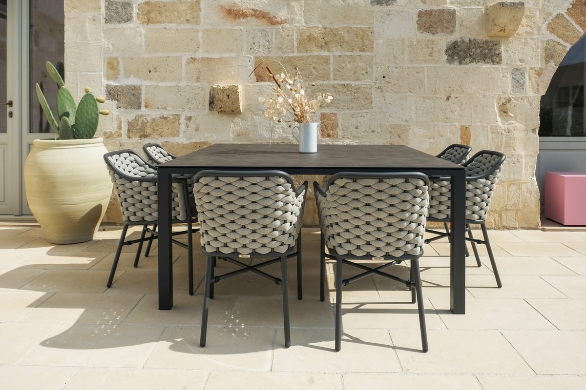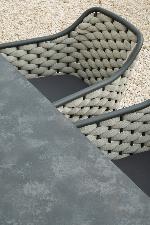 Le dialogue entre le cordon tissé et le cadre est l'élément distinctif de cette famille de mobilier. Lignes et volumes s'unissent pour offrir le plus grand confort.